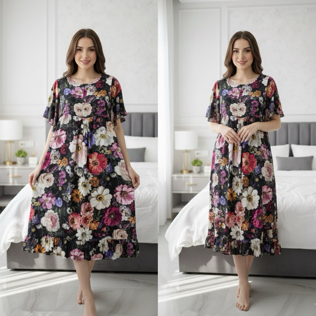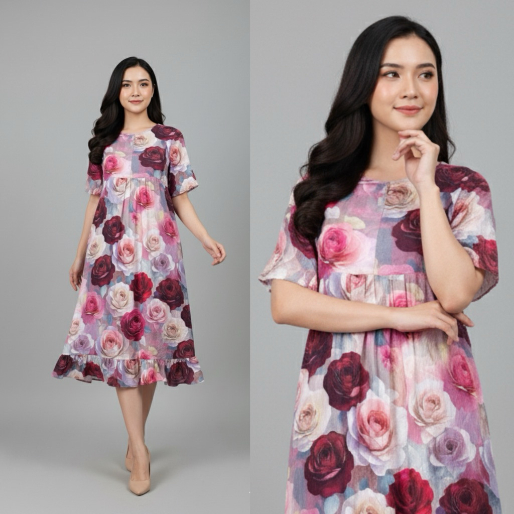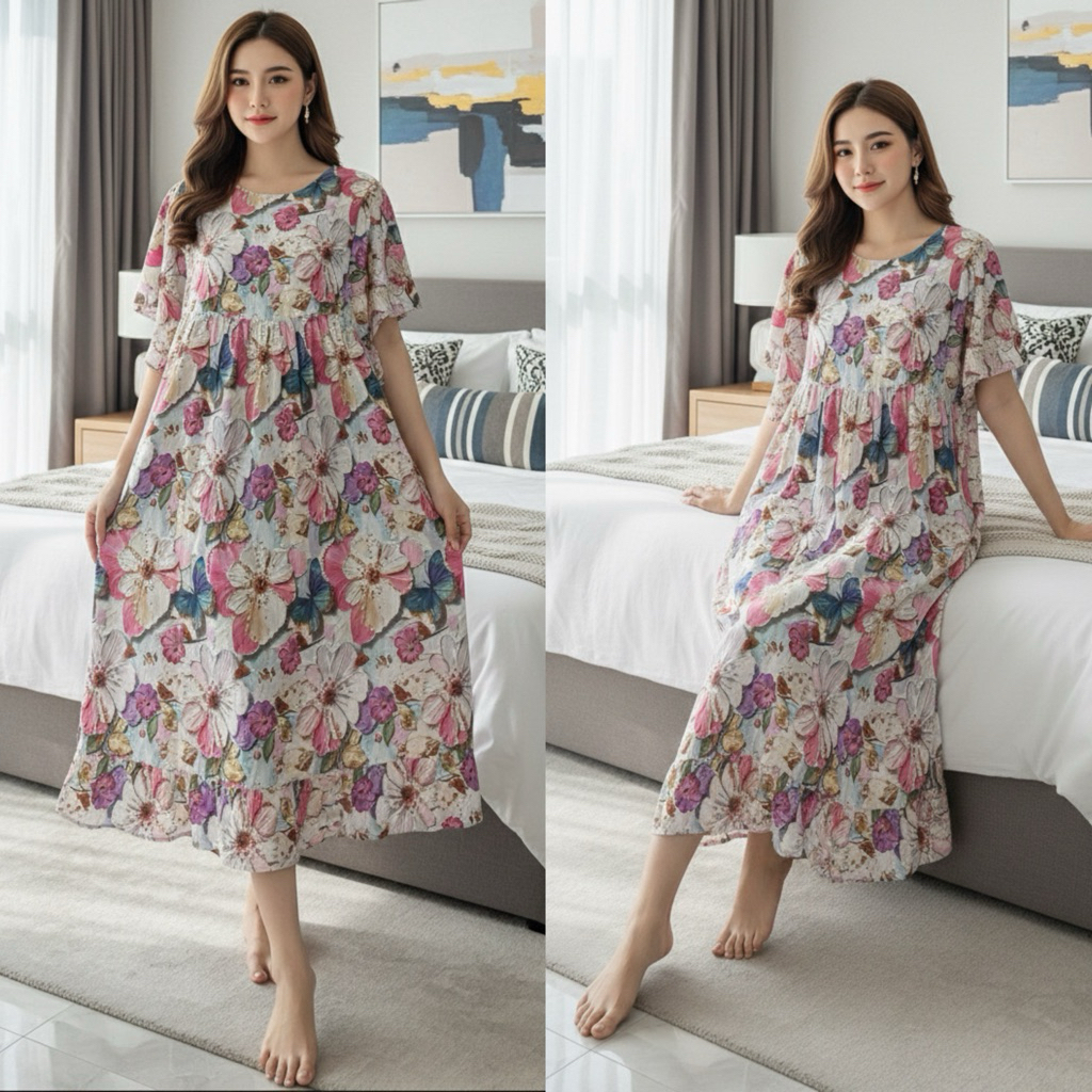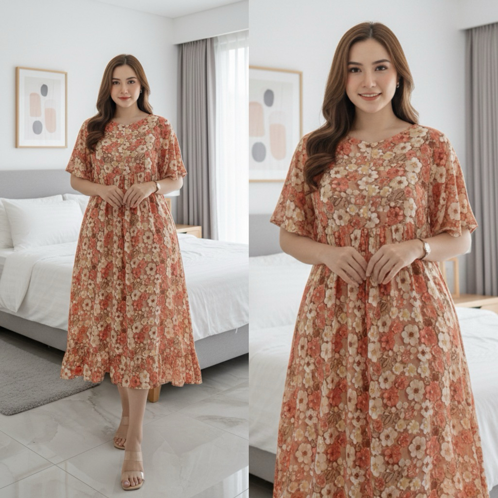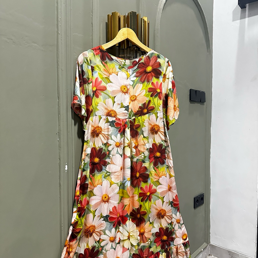 Daster Lily bumil busui friendly / Daster kekinian viral etnik Tasik / Daster Long katun rayon premium / daster korea midi home dress