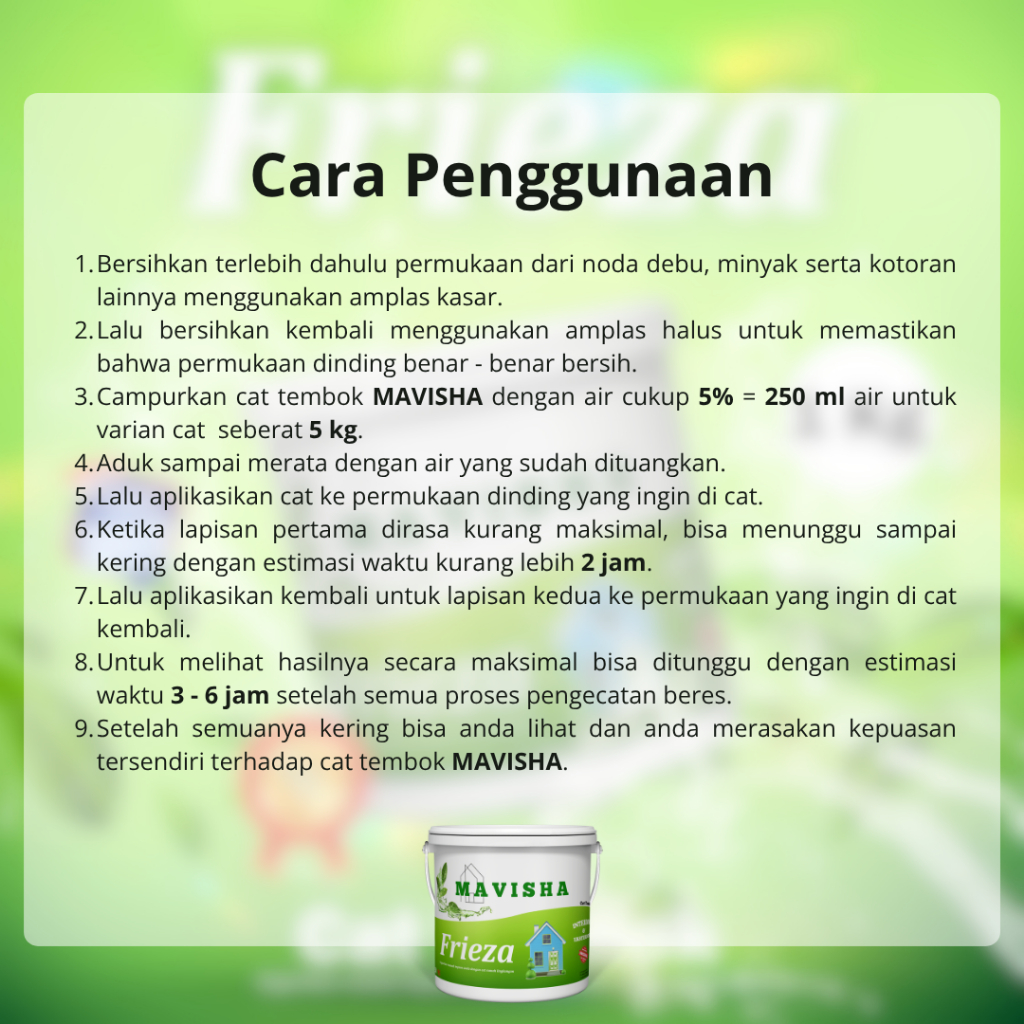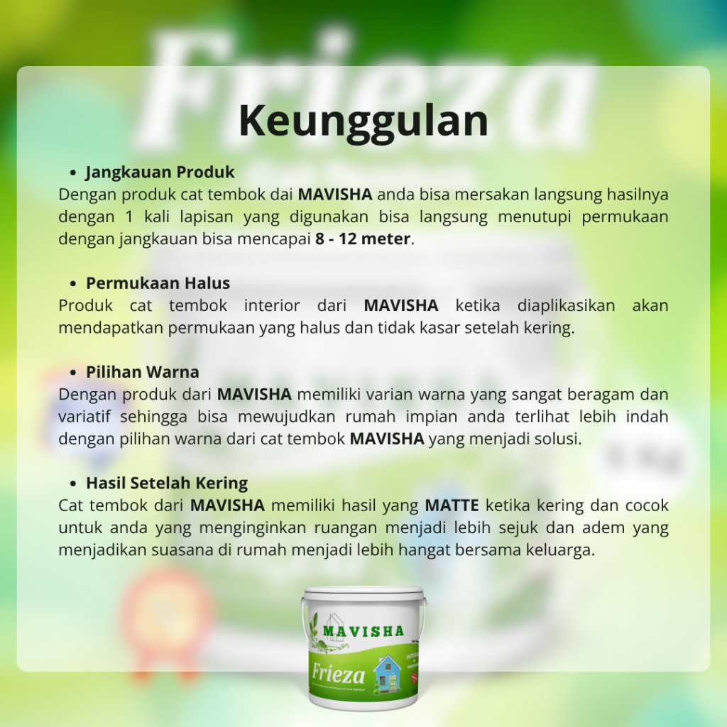 MAVISHA - Cat Dinding Interior 5KG Anti Luntur - Tidak Mengapur & Mudah Dibersihkan