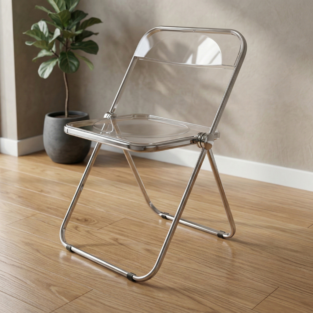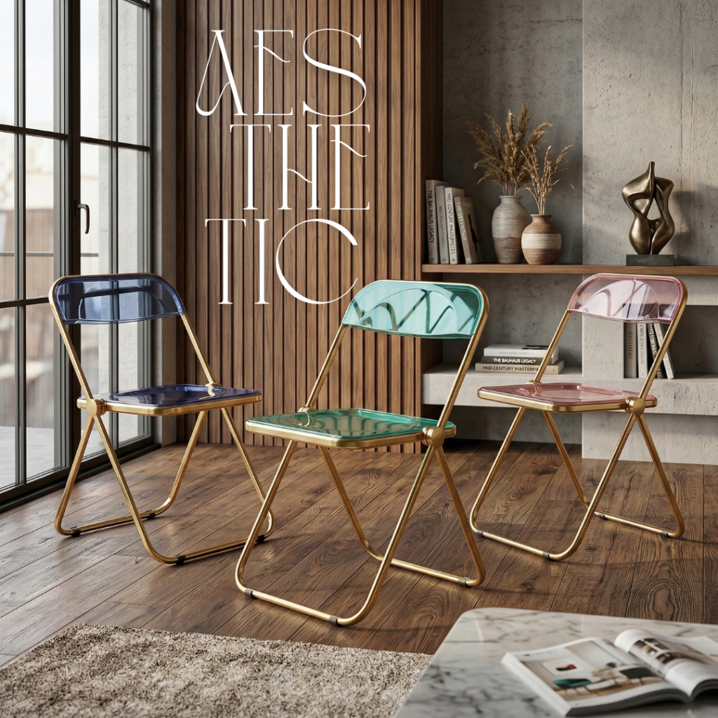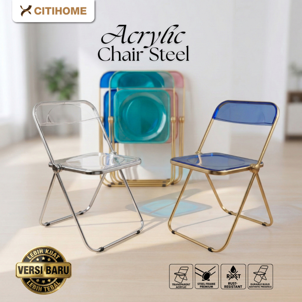 Kursi Lipat Akrilik Transparan Premium Rangka Besi Chrome Gold dan Silver Desain Modern Minimalis