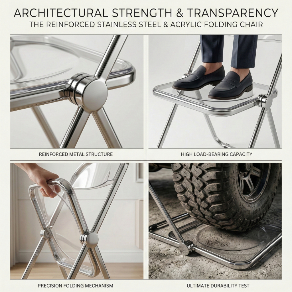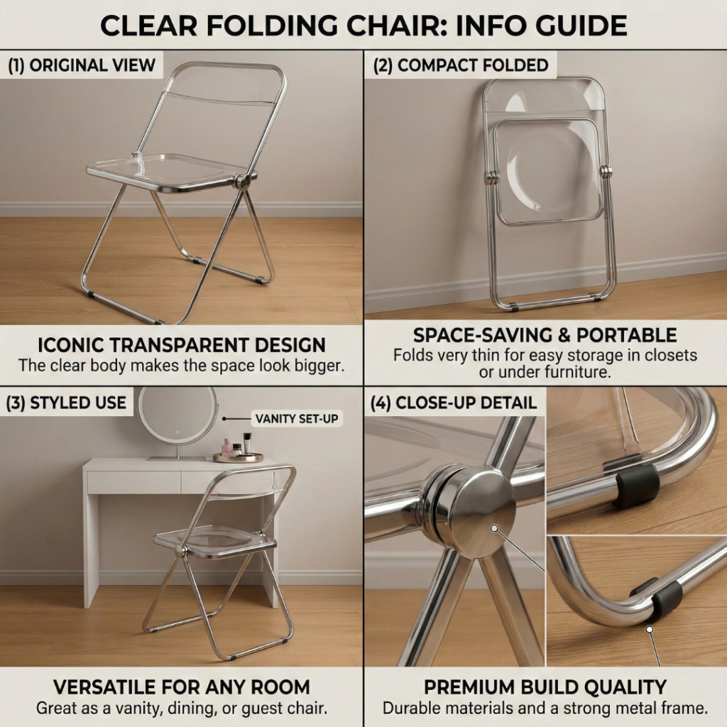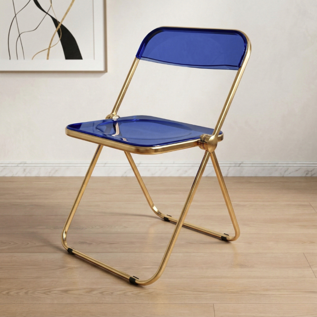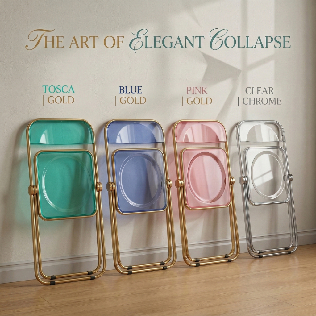 Kursi Lipat Akrilik Transparan Premium Rangka Besi Chrome Gold dan Silver Desain Modern Minimalis