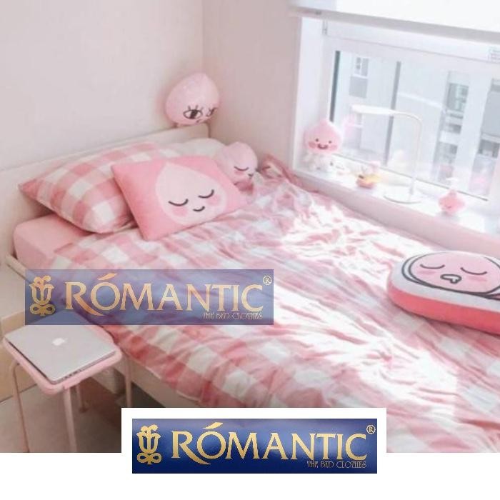 Premium! Sprei Aesthetic Romantic Kotak Pink Sepray Katun