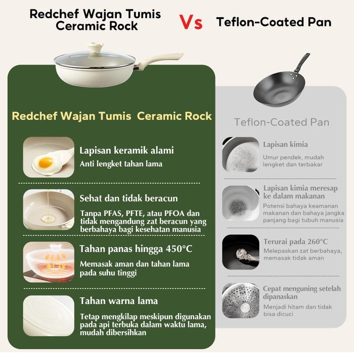 Redchef Wajan Penggorengan Keramik Anti Lengket 28cm dengan tutup Bebas PFAS & PTFE & PFOA Cocok