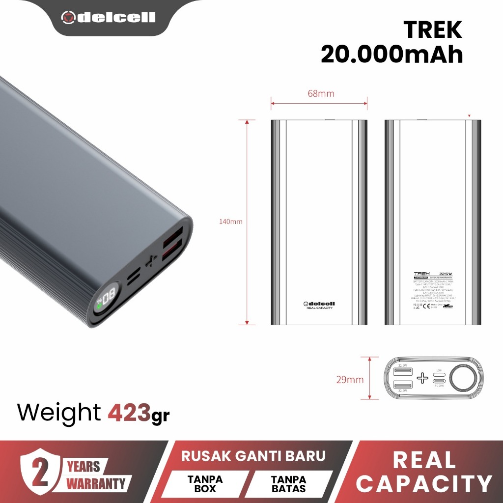 Delcell Trek Powerbank 20000mAh Fast Charging 22.5W LED Display PD +QC Fast Charging Original
