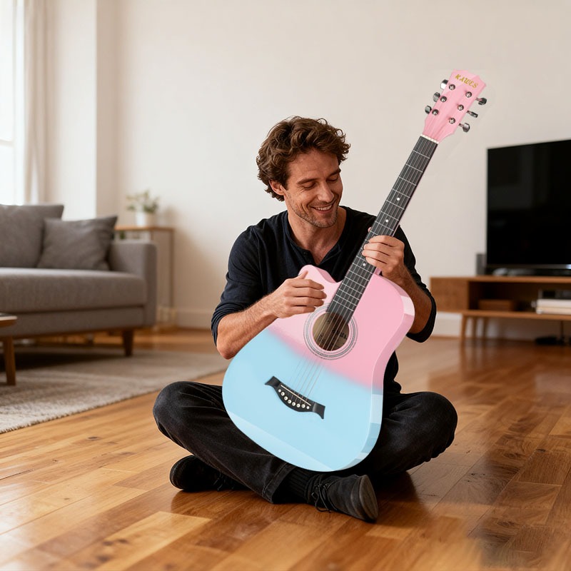 KAWES Gitar akustik tingkat pemula cocok untuk pemula untuk berlatih 38 inci Set lengkap dengan stand gitar dan aksesoris