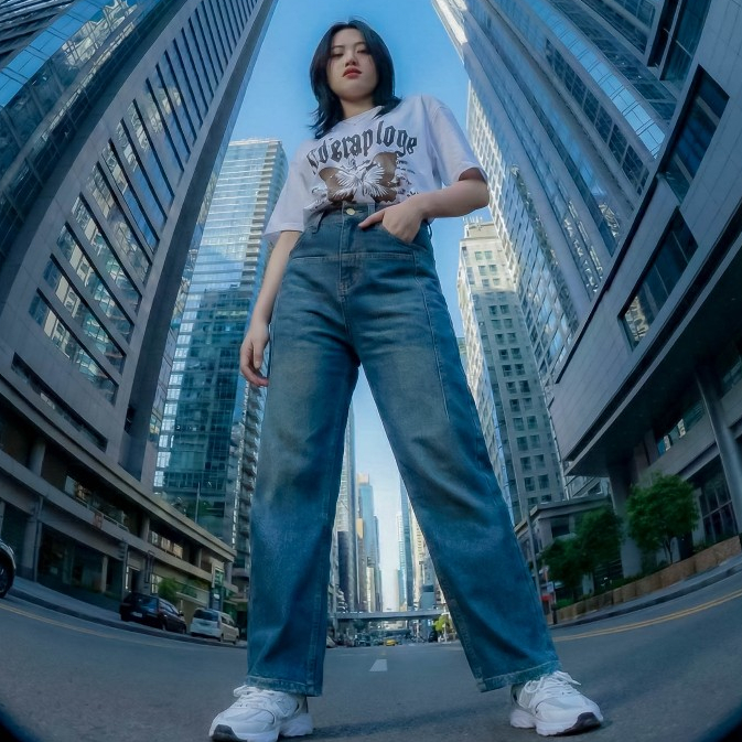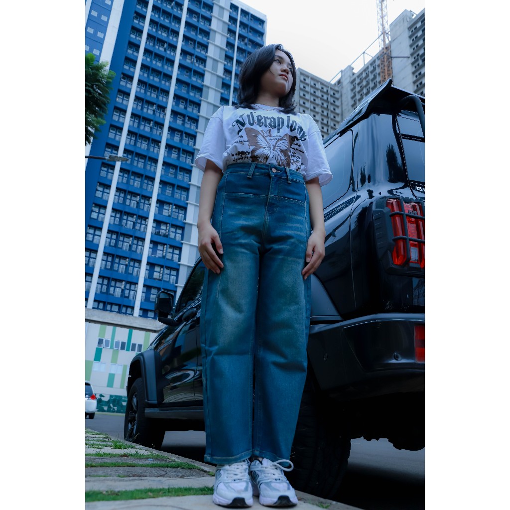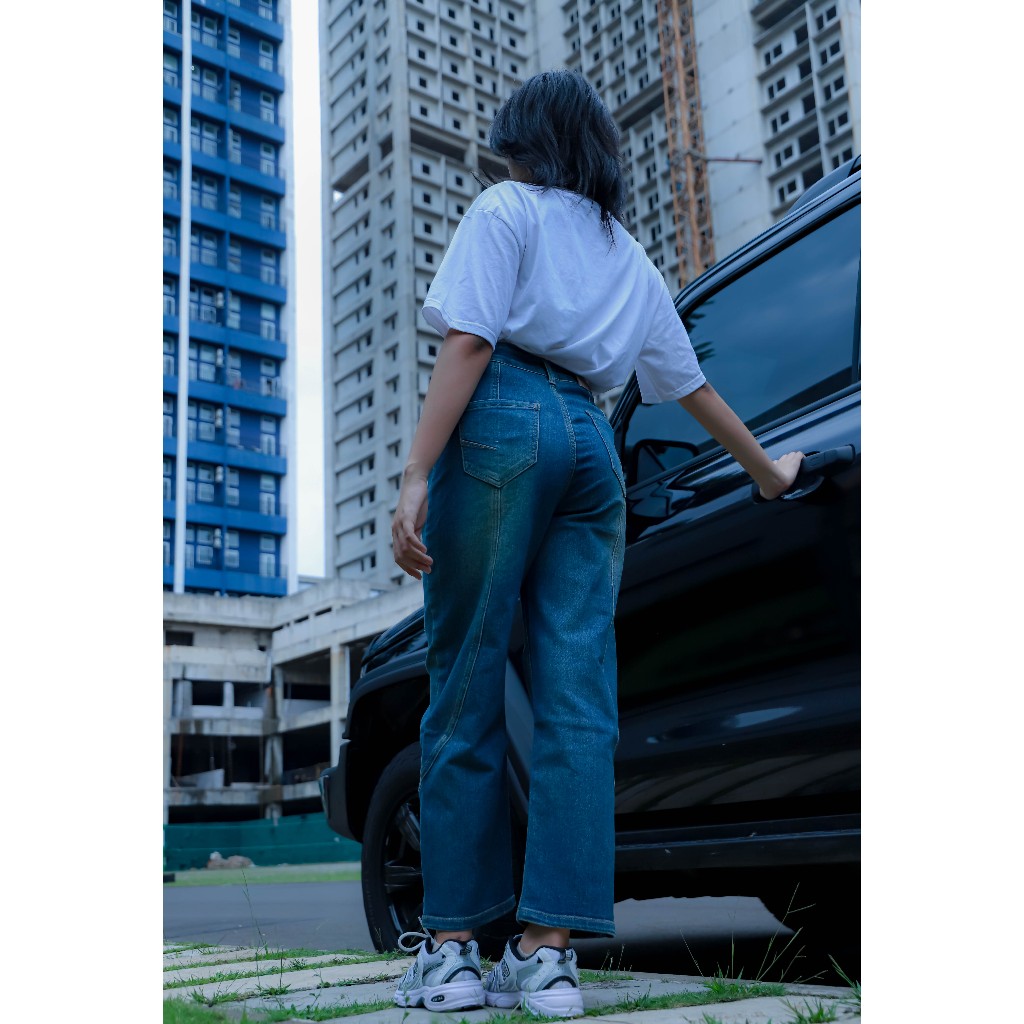 Celana Dad Jeans Warna Biru Retro Model Baru 2025 - Katun Nyaman - Gratis Ongkir - Mendukung COD
