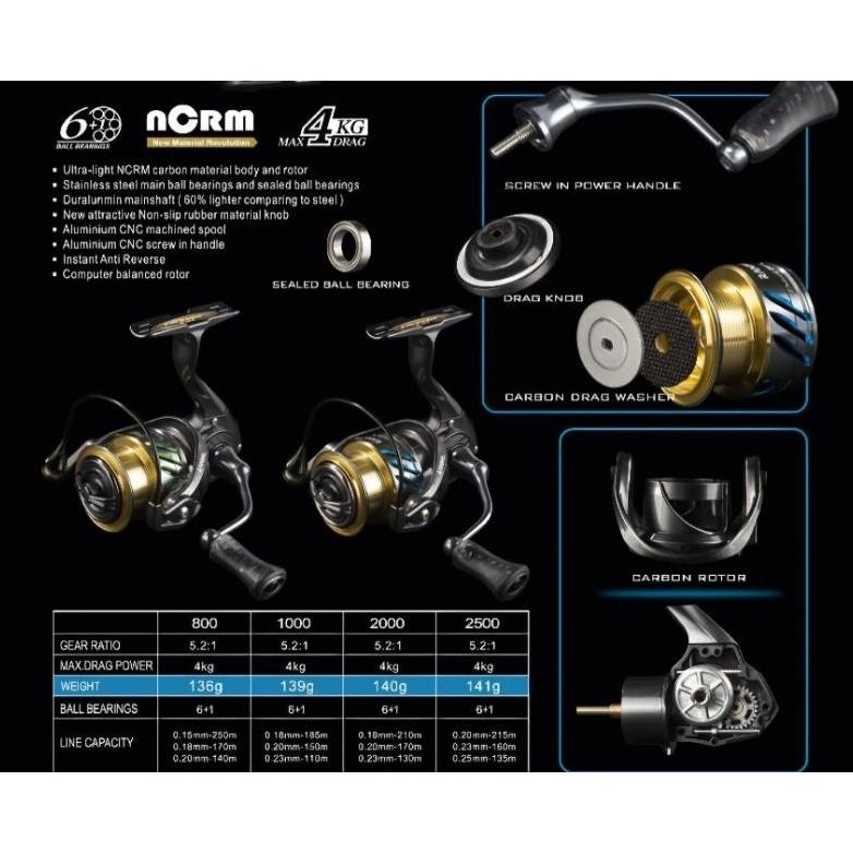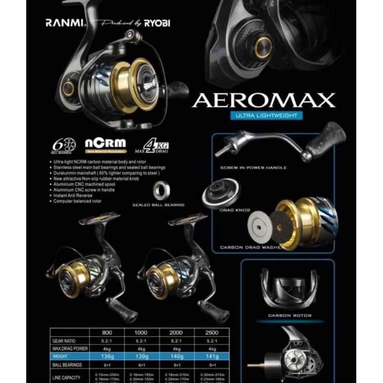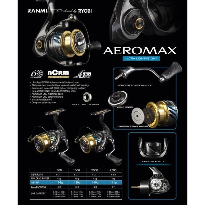 Reel Pancing Ryobi Ranmi Aeromax 800/1000/2000/2500 Power Handle/Ultra Lightweight Material