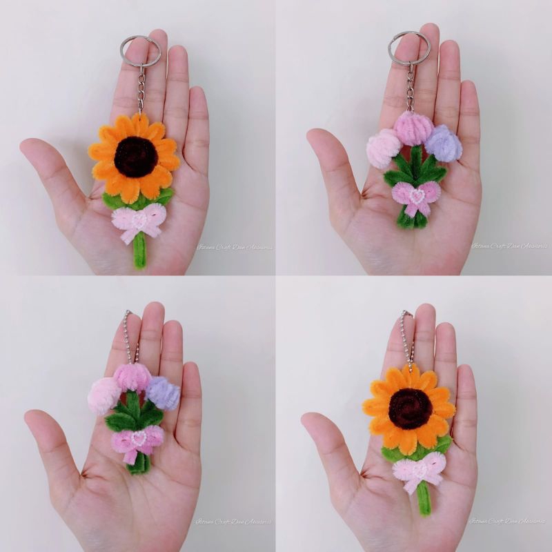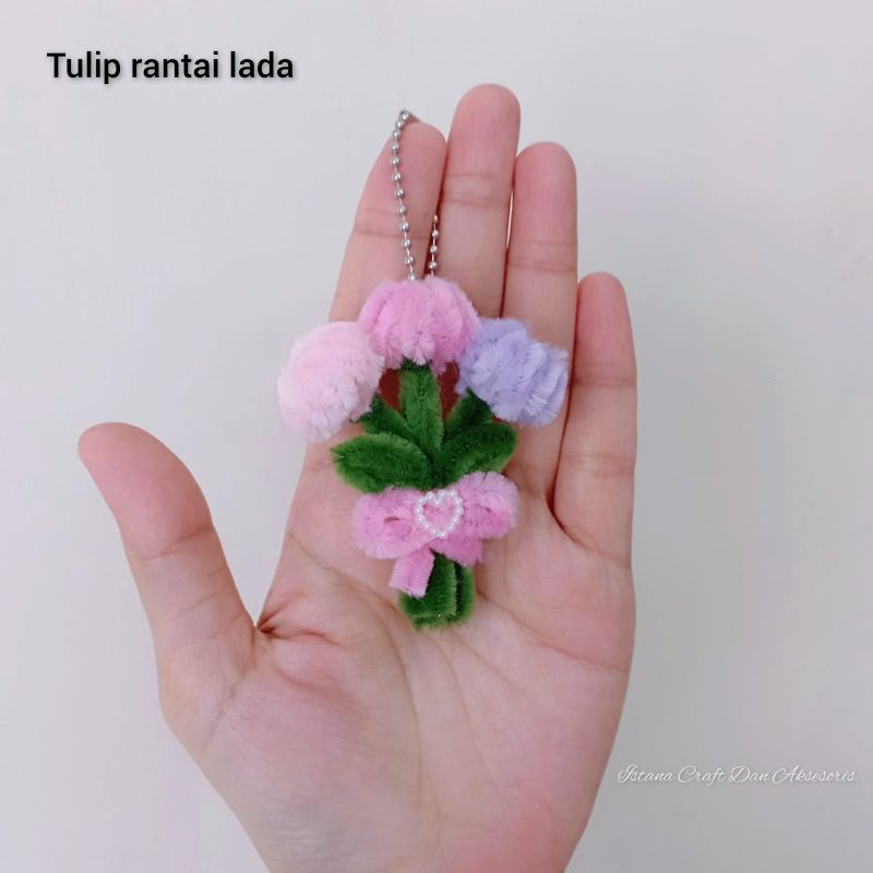 Gantungan Kunci / Tas Bunga Tulip Premium Kawat Bulu / Pipe Cleaner