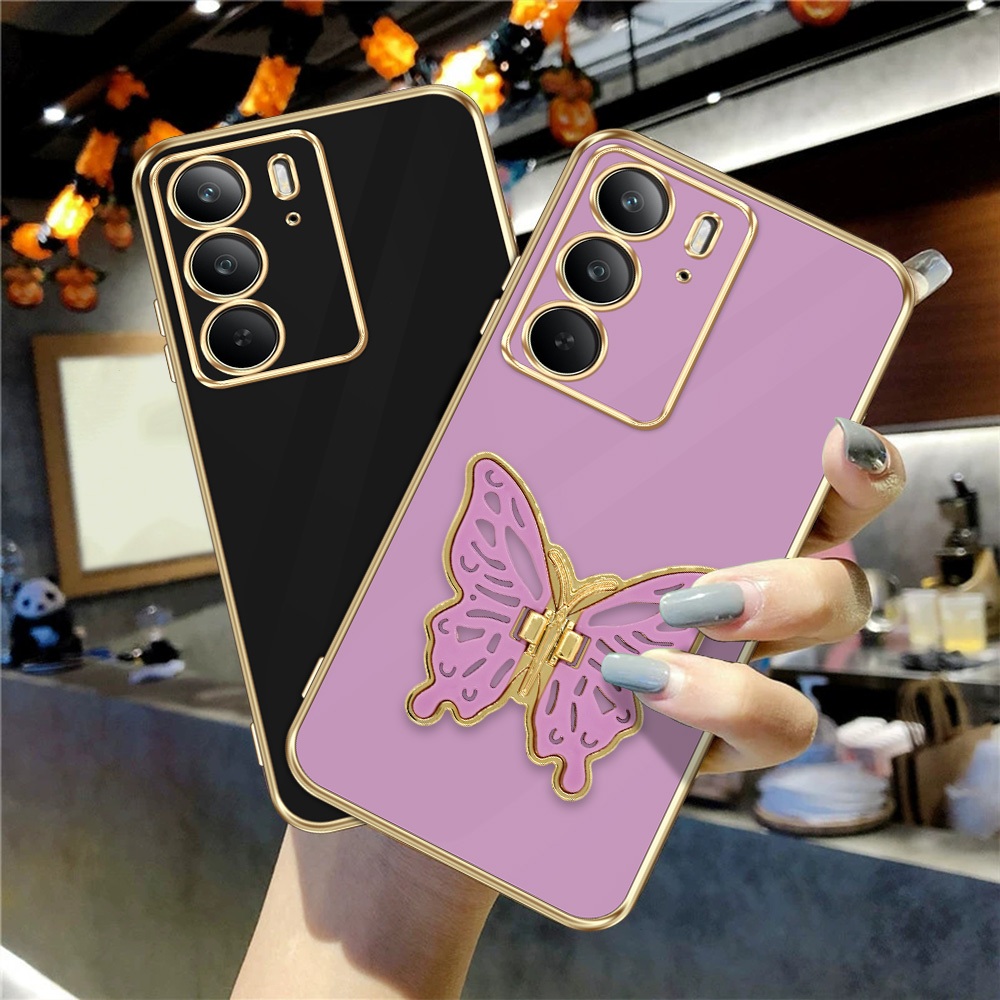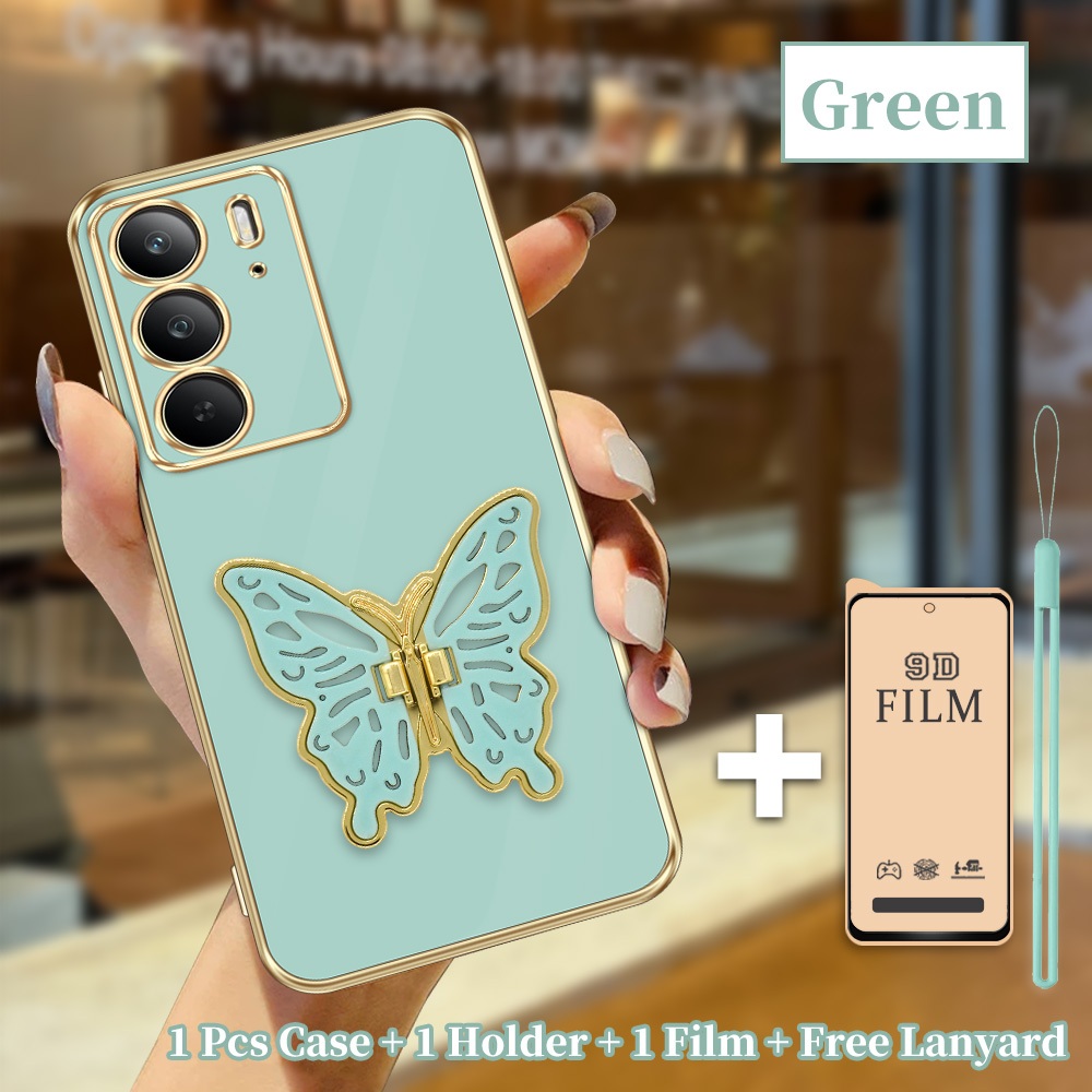 Case Cantik Untuk Realme C75 C75x Full Set 3in1 Casing Aesthetic Softcase + Stand Kupu Tali + Film Keramik Anti Gore