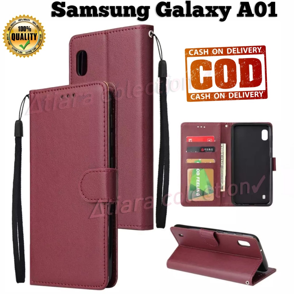 Samsung A01 A01 Core A10 M10 A20 A30 CASING DOMPET HP COVER HP LEATHER FLIP CASE PREMIUM