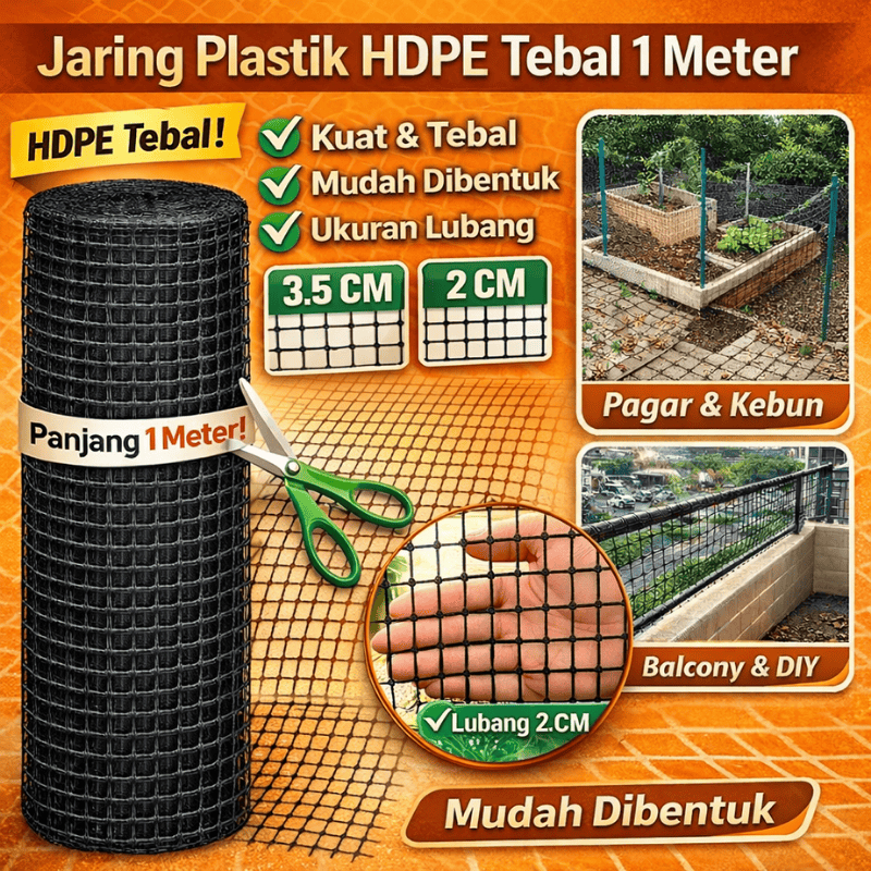 Jaring Ayam HDPE Tebal 1 Meter | Lubang 2CM | Cocok Anak Ayam & Ayam Dewasa