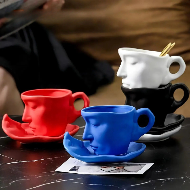 & Face Love Kissing Coffee Cups Mugs,Creative Ceramic Mugs Coffee Cup Artistic Kiss Ceramic Coffee