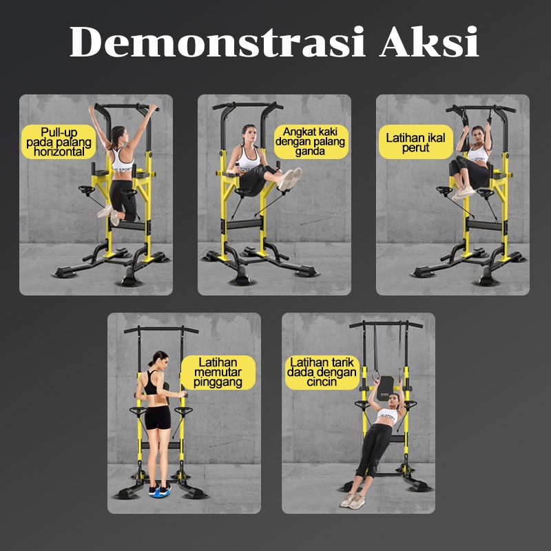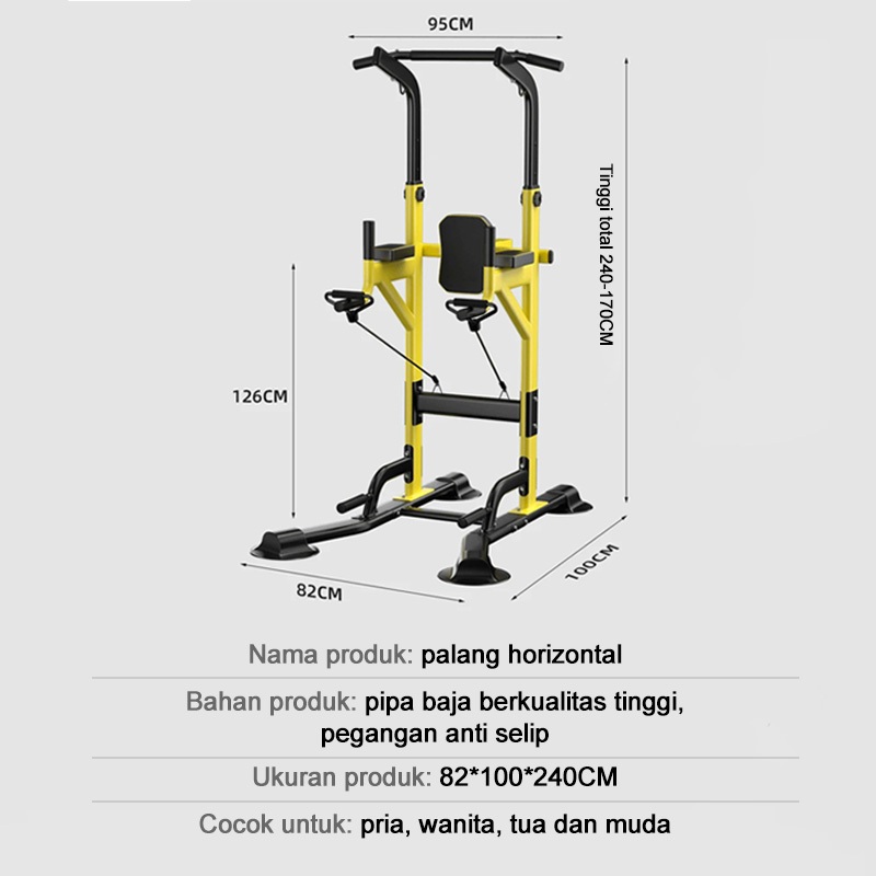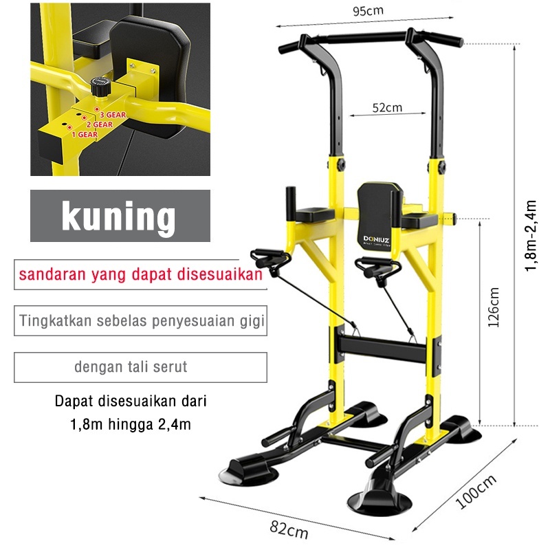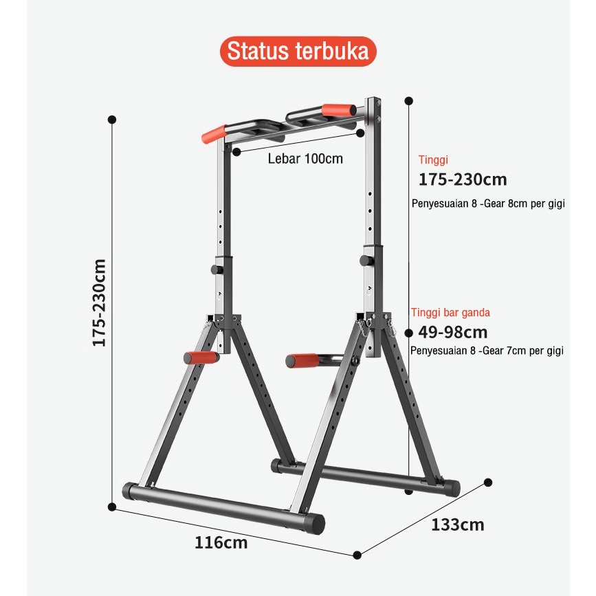 Pull Up Bar Portabel Tinggi Bisa Diatur + Push Up Handle Multifungsi/Adjustable Height chin up bar/alat fitness rumah/Latihan Otot Punggung & Lengan
