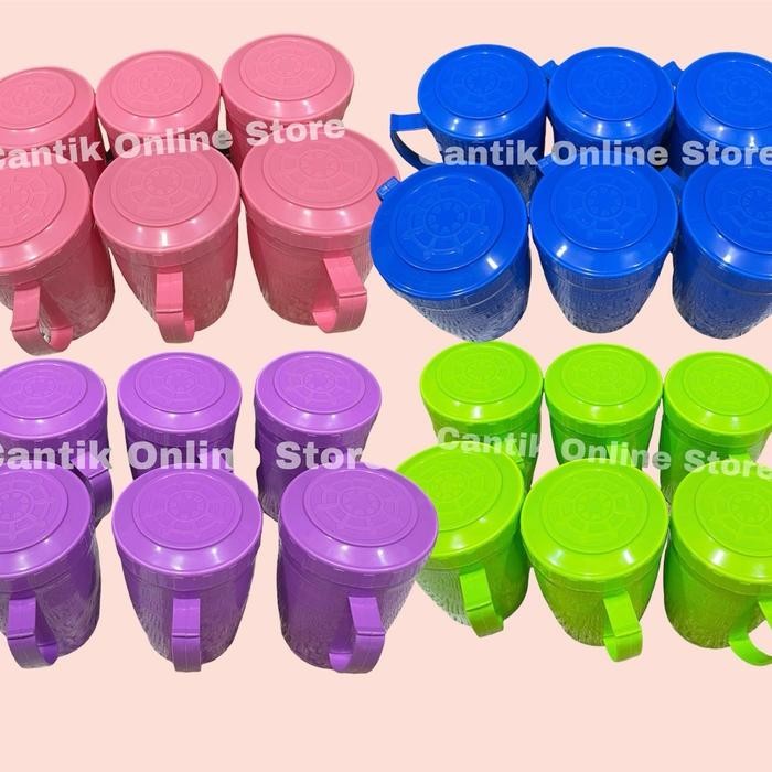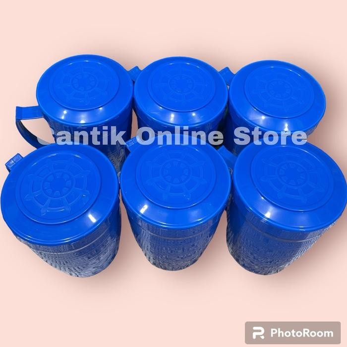 Mug Tutup/Gelas Jumbo/Gelas Tutup plastik Estetik 1 liter BPA Free Tahan Panas isi 12 pcs
