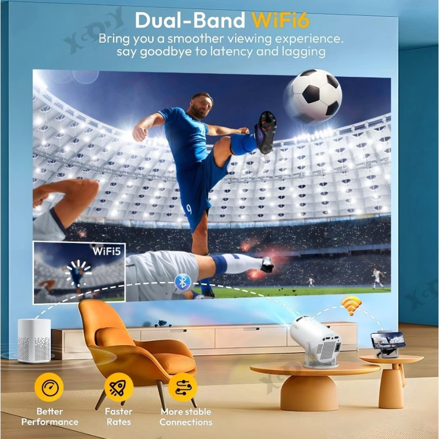 Proyektor HY300 4K Ultra HDMI 720p Android 11.0 WiFi Bluetooth Telepon Wireless Smart Proyektor 8000 Lumens Projector Fleksibel Laser Portabel Proyektor TERLARIS