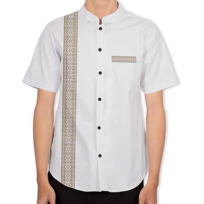 Termurah / Hot Sale Fortklass Alaami Baju Koko Bordir Kemeja Polos Pria Lengan Pendek Regular Fit Pakaian Muslim Pria Baju Lebaran