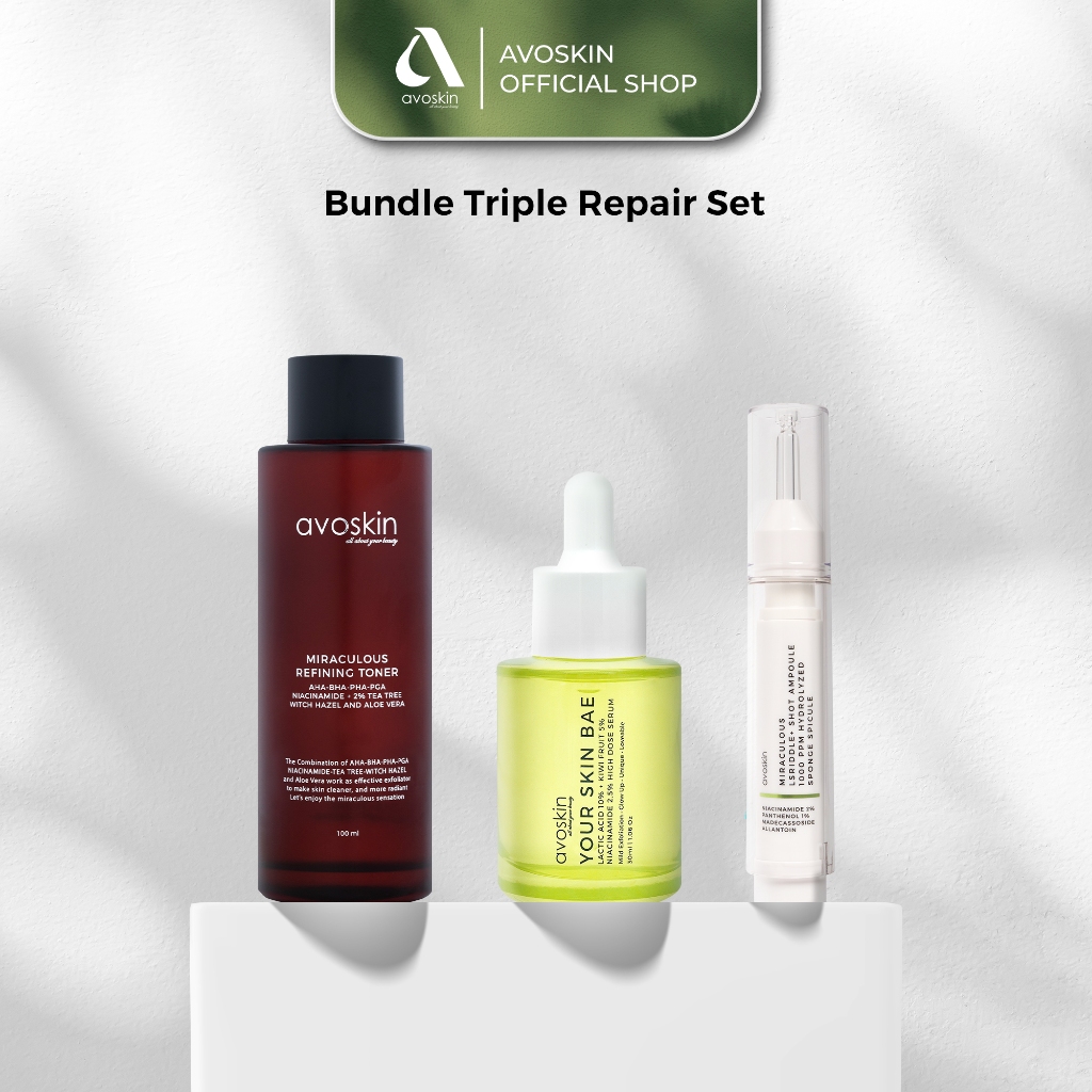 Bundle Triple Repair Set Avoskin - Miraculous Refining Toner (100 ml) + YSB Serum Lactic Acid 10% + Miraculous LSRiddle+ Shot Ampoule (10 ml)