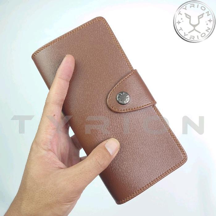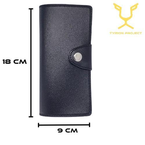 (Fashion Fixation) TYRION PROJECT - Dompet Lipat PANJANG KANCING Kulit Sintetis Premium tebal untuk Pria dan Wanita dengan Slot Kartu Uang - hitam kancing