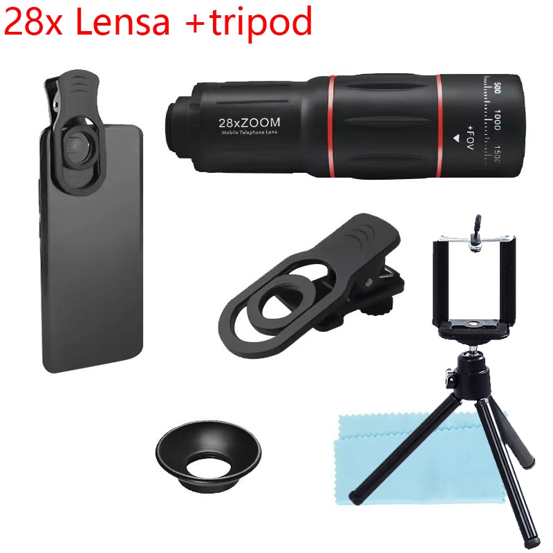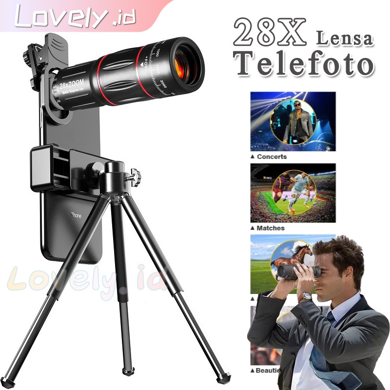 Lensa Kamera Hp Apexel 28x Zoom Paduan Aluminium Lensa Tele Zoom Hp (Dengan Tripod)