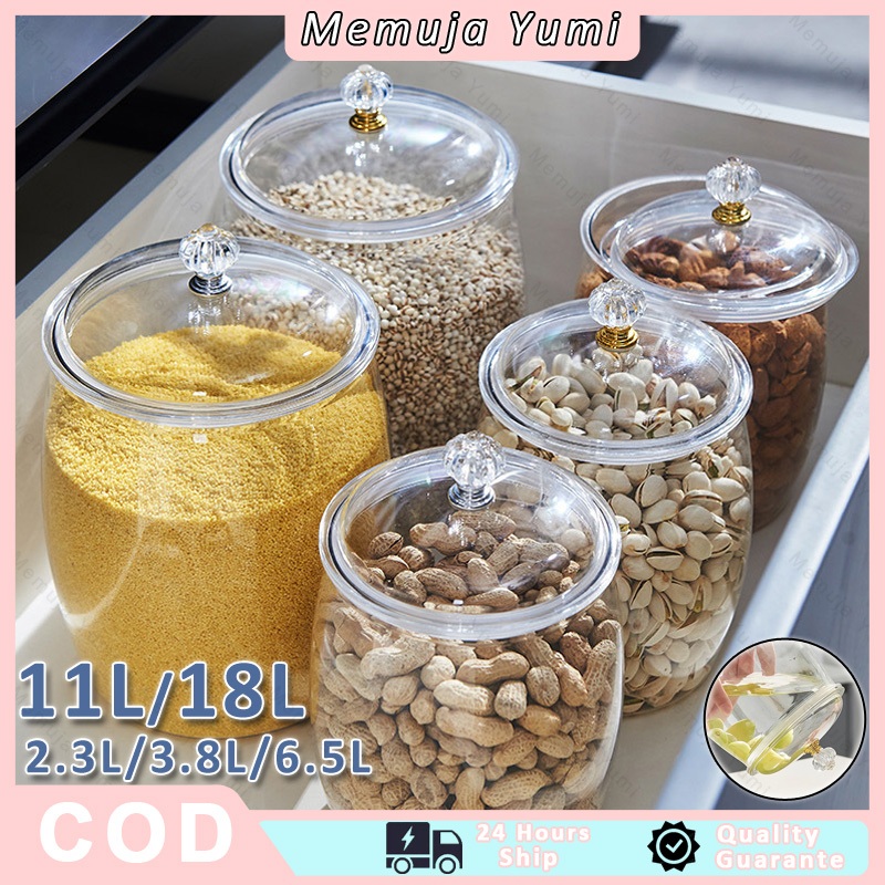Toples Akrilik Jumbo Kedap Udara/Wadah Plastik Tertutup Kapasitas Besar / Penyimpanan Bumbu Dapur Anti Bocor / Guci Bumbu Dapur / Stoples Jars Penyimpanan Makanan / Snack / Kue/Guci Bumbu Makanan Guci Penyegel