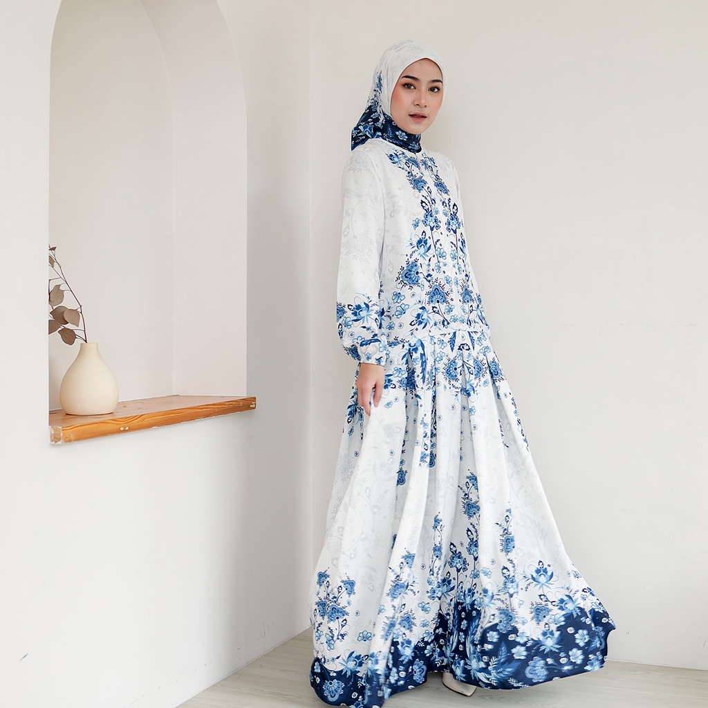 Nawasana Dress Gamis Motif Print Wanita Muslim Hasnah