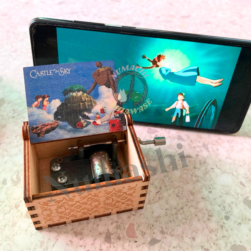 MUSIC BOX STUDIO GHIBLI INCLUDE DEKOR KADO HADIAH kotak musik orgel ukiran kayu vintage manual totoro, spirited away, castle of the sky, howl moving c