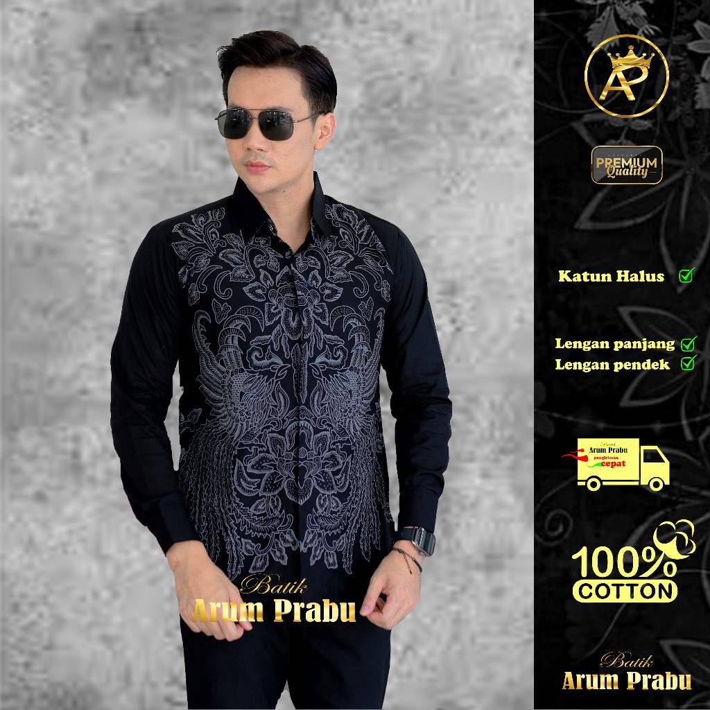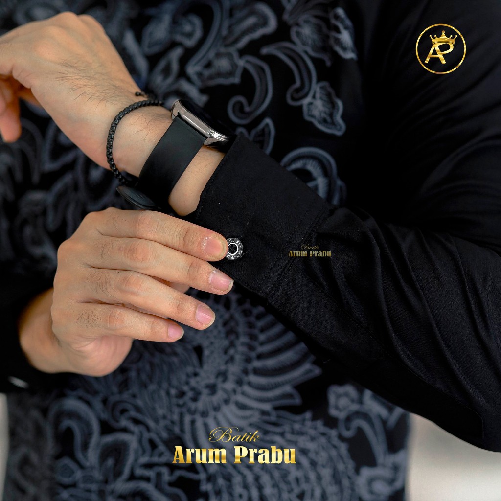 Batik Arum Prabu MOTIF KUSUMO Lengan Panjang Hitam LAPIS FURING ERRO PREMIUM