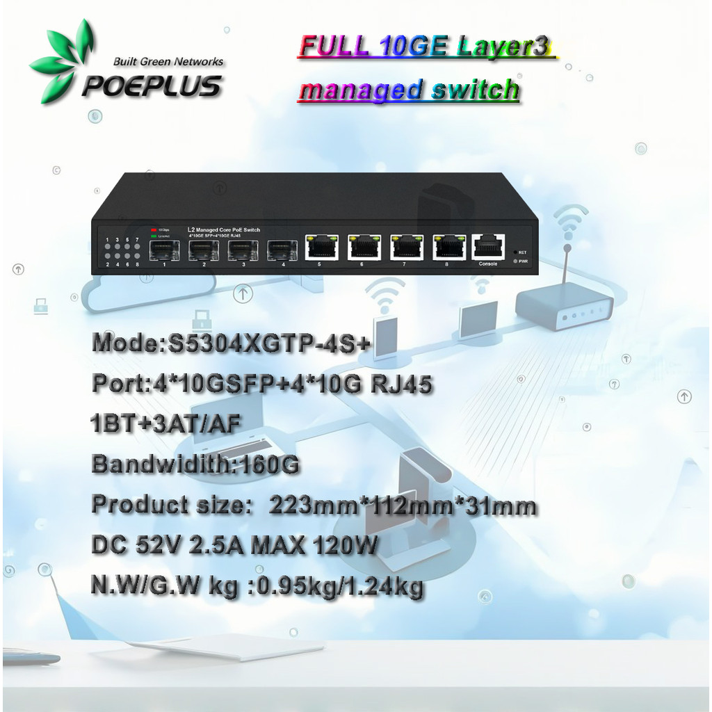 Full 10Gbe layer 3 managed switch|8 ports L3 10G switch|POE or Non |QOS,DHCP,ACL,IGMP Snooping,VLAN,Static route,RIP,Mirroring