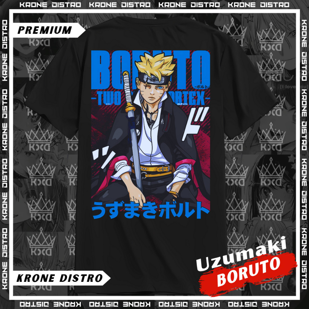 KRONE Kaos Anime BORUTO Next Generation BLUE VORTEX Katun Premium 24s - Tshirt Distro