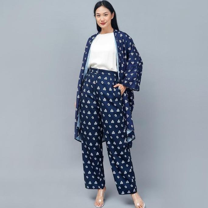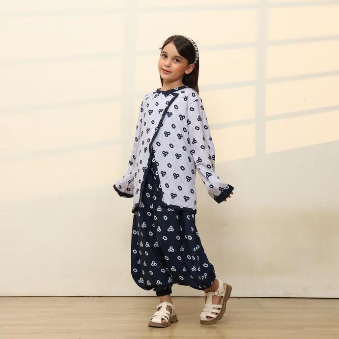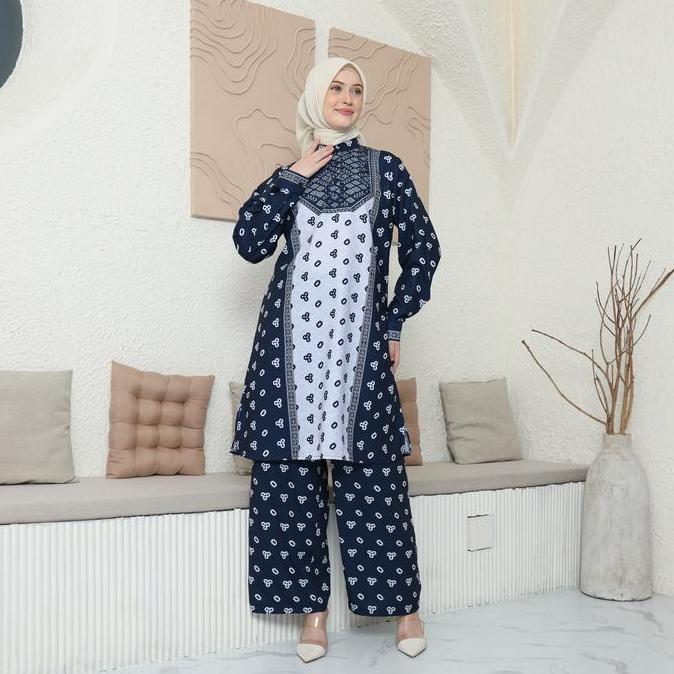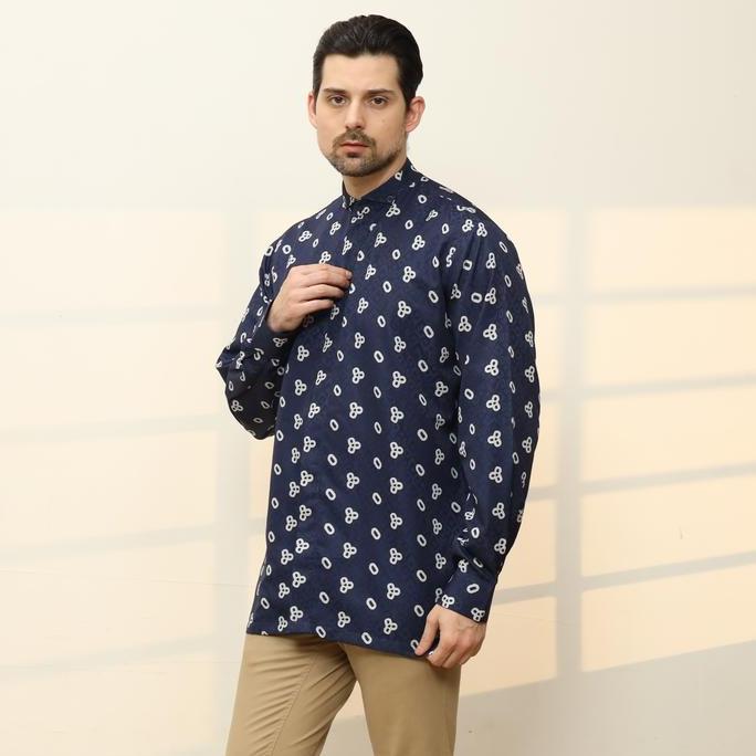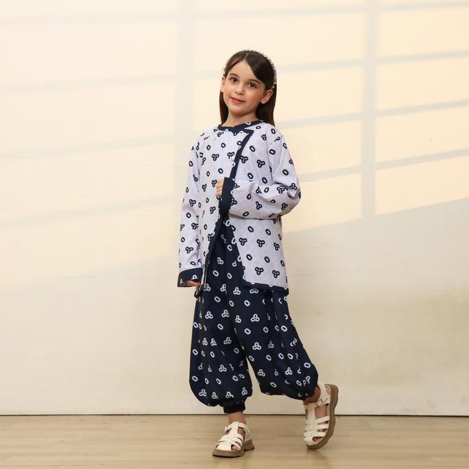 Super Sale!, Wiriwiri Series Raya 2026 Sarimbit Batik Jumputan Royal Navy Gamis Dan One Set Ayah Ibu & Anak ( Printing Premium)