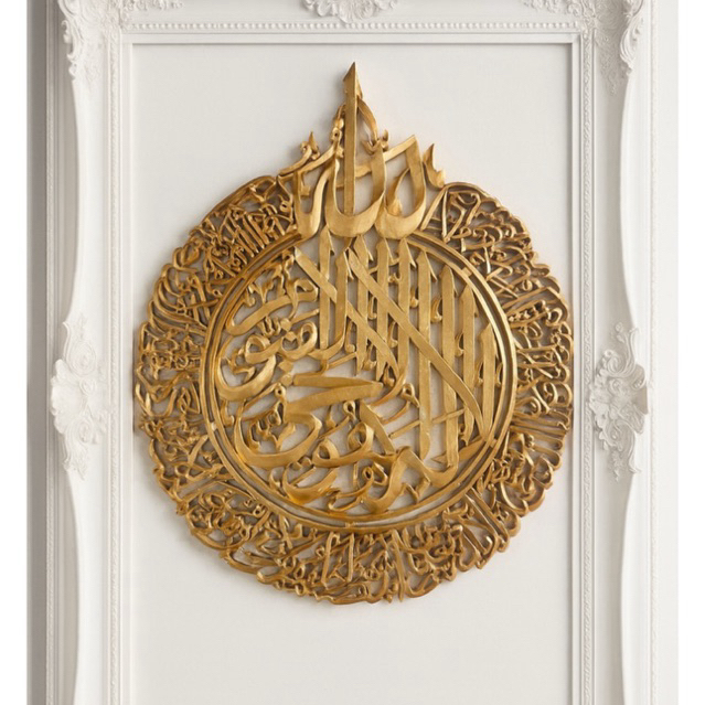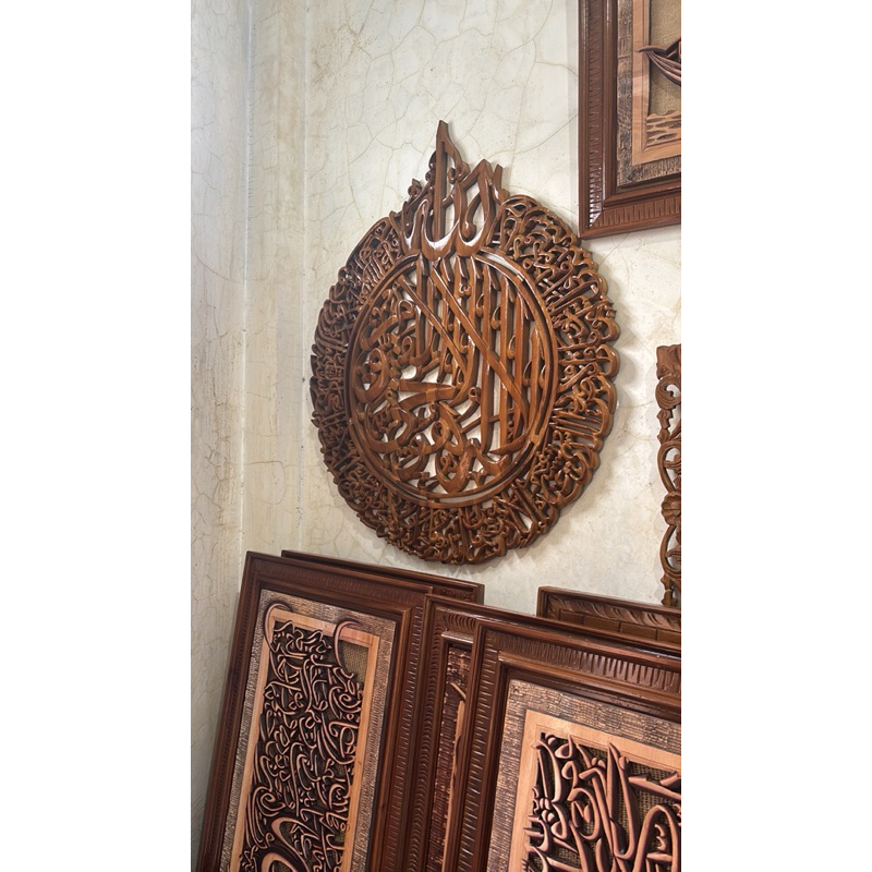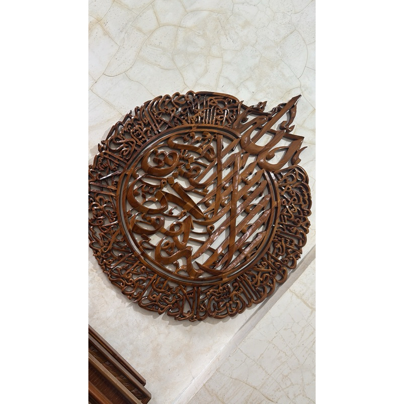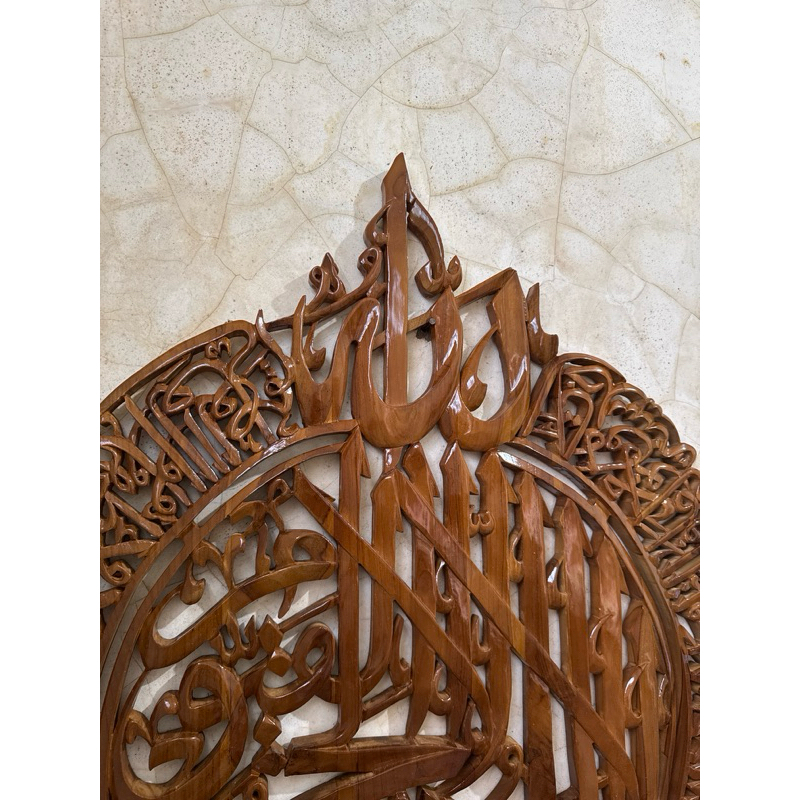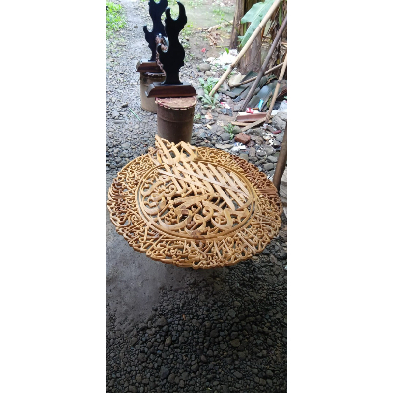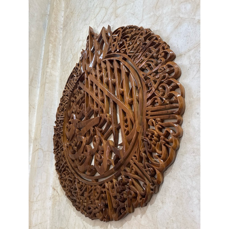 Kaligrafi ayat kursi frameless ukiran jati jepara 95x80