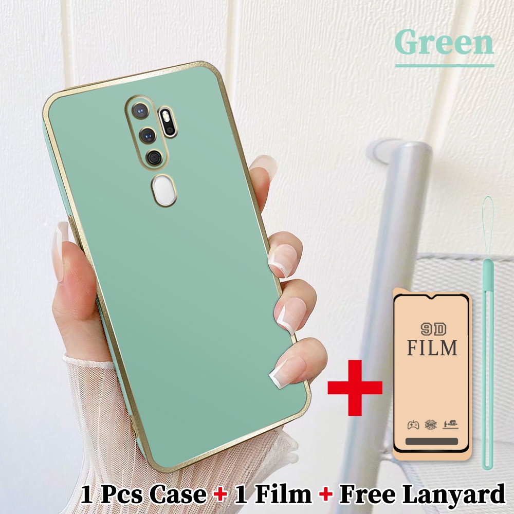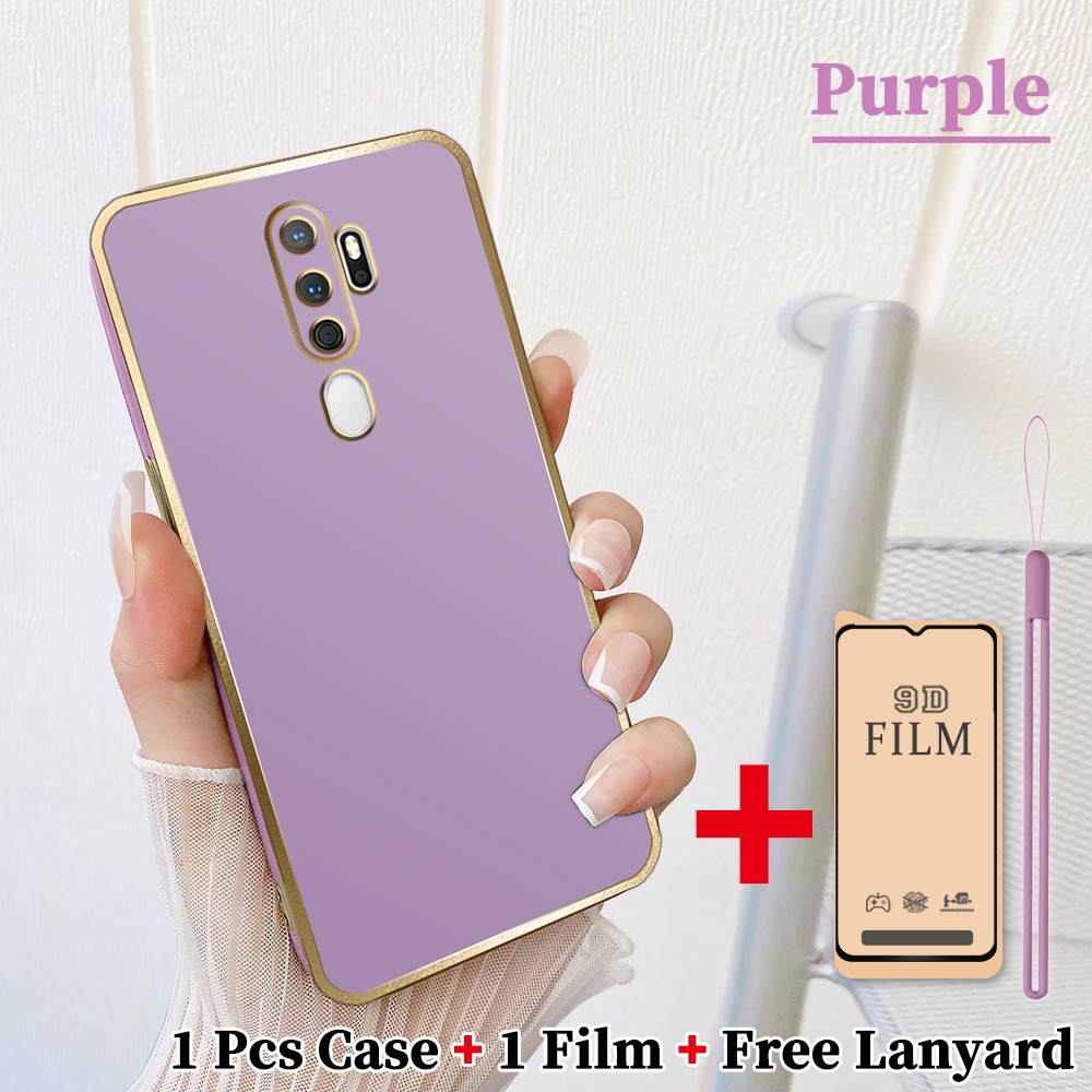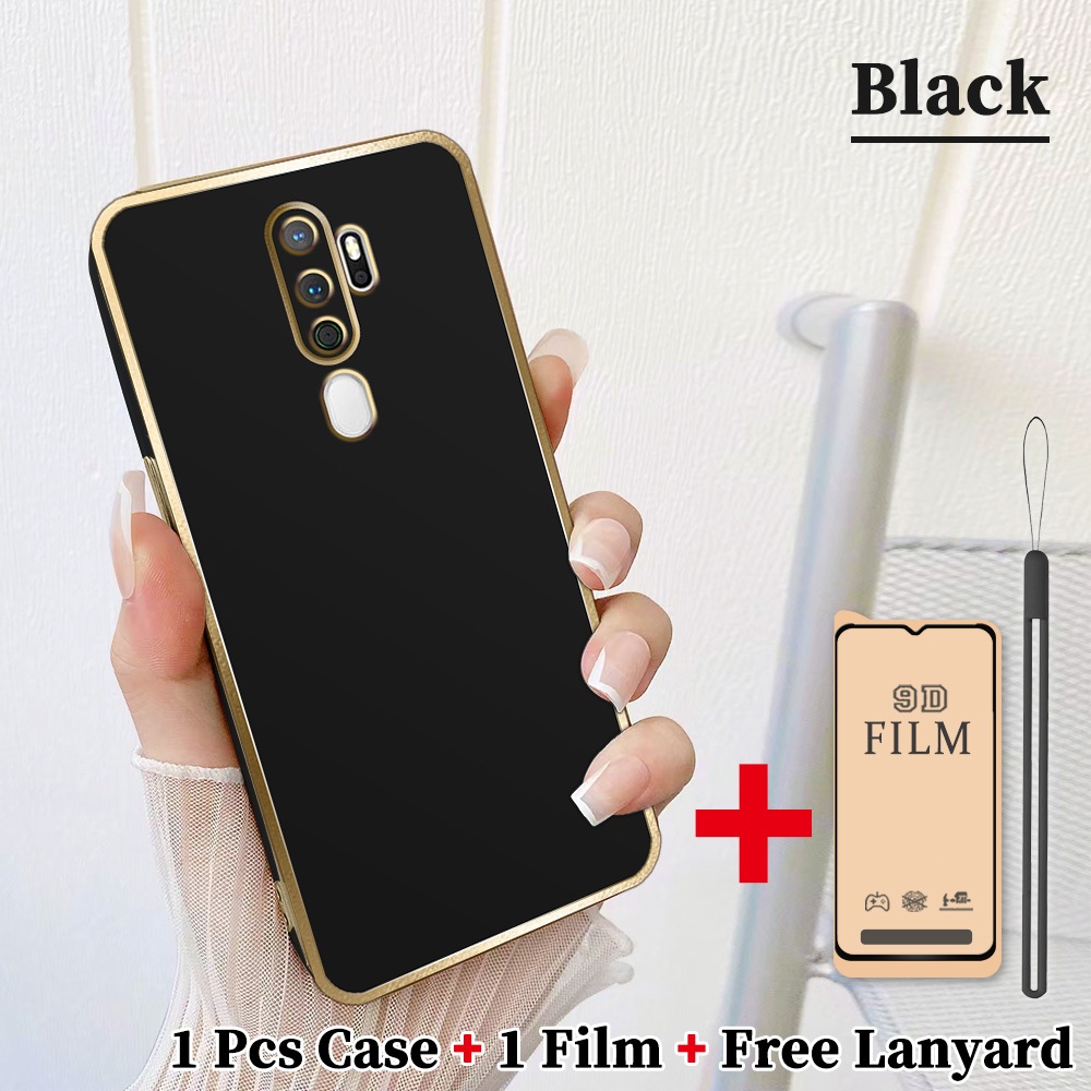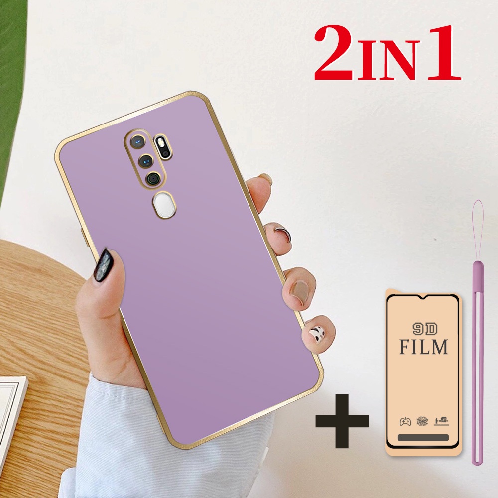 2 dalam 1 Casing untuk OPPO A5 2020 A9 2020 Case Softcase dengan Pelindung Layar Keramik Anti Gores dan lanyard Silikon