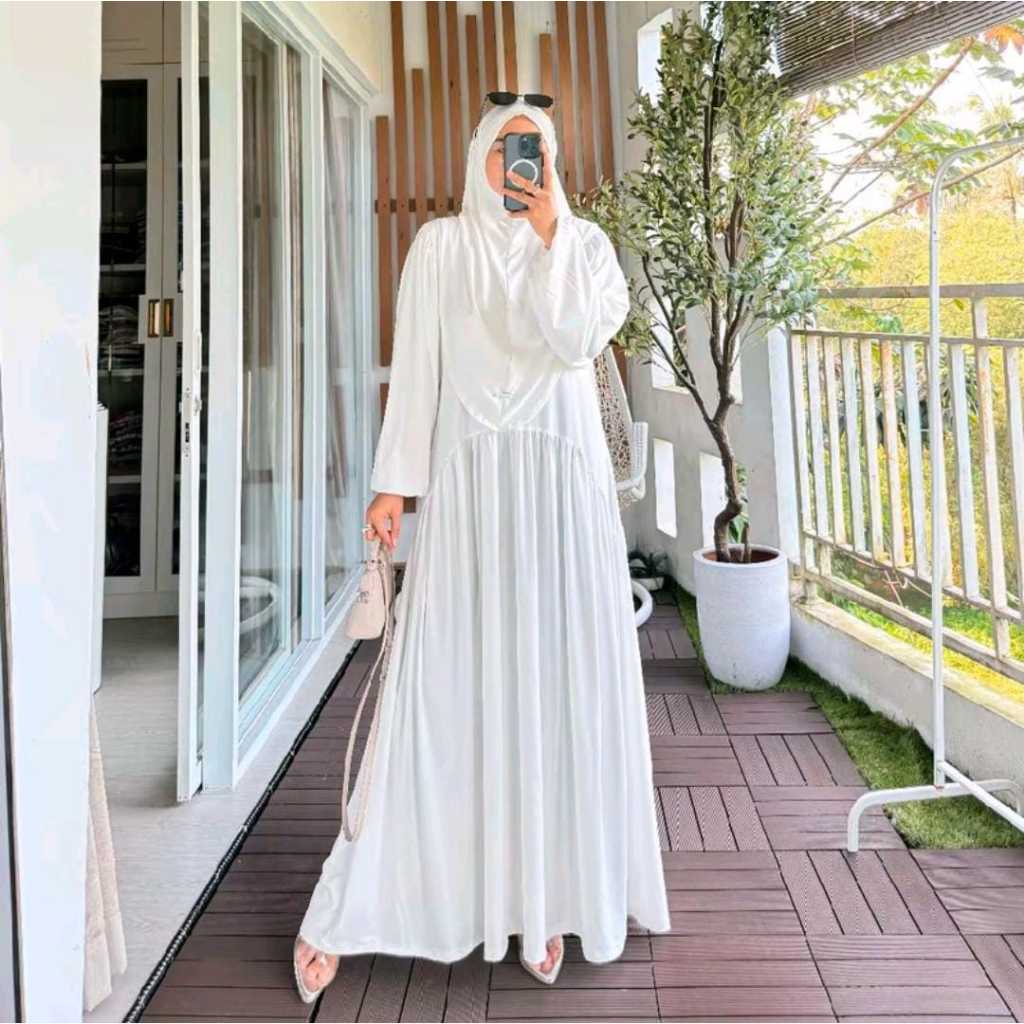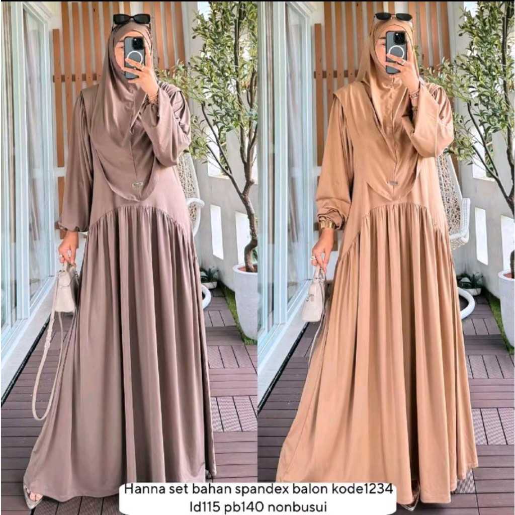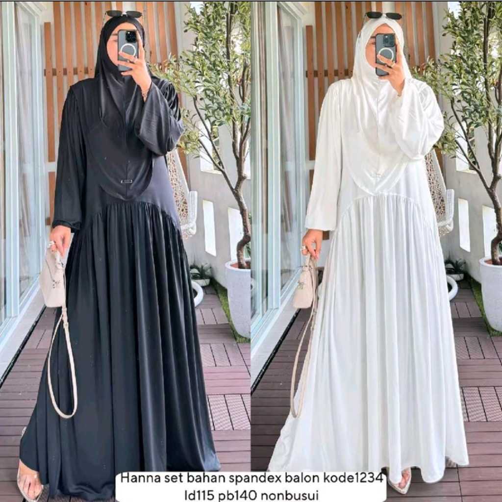 Gamis Polos Hanna Set Hijab 2in1 Bahan Jersey Premium Super Jumbo