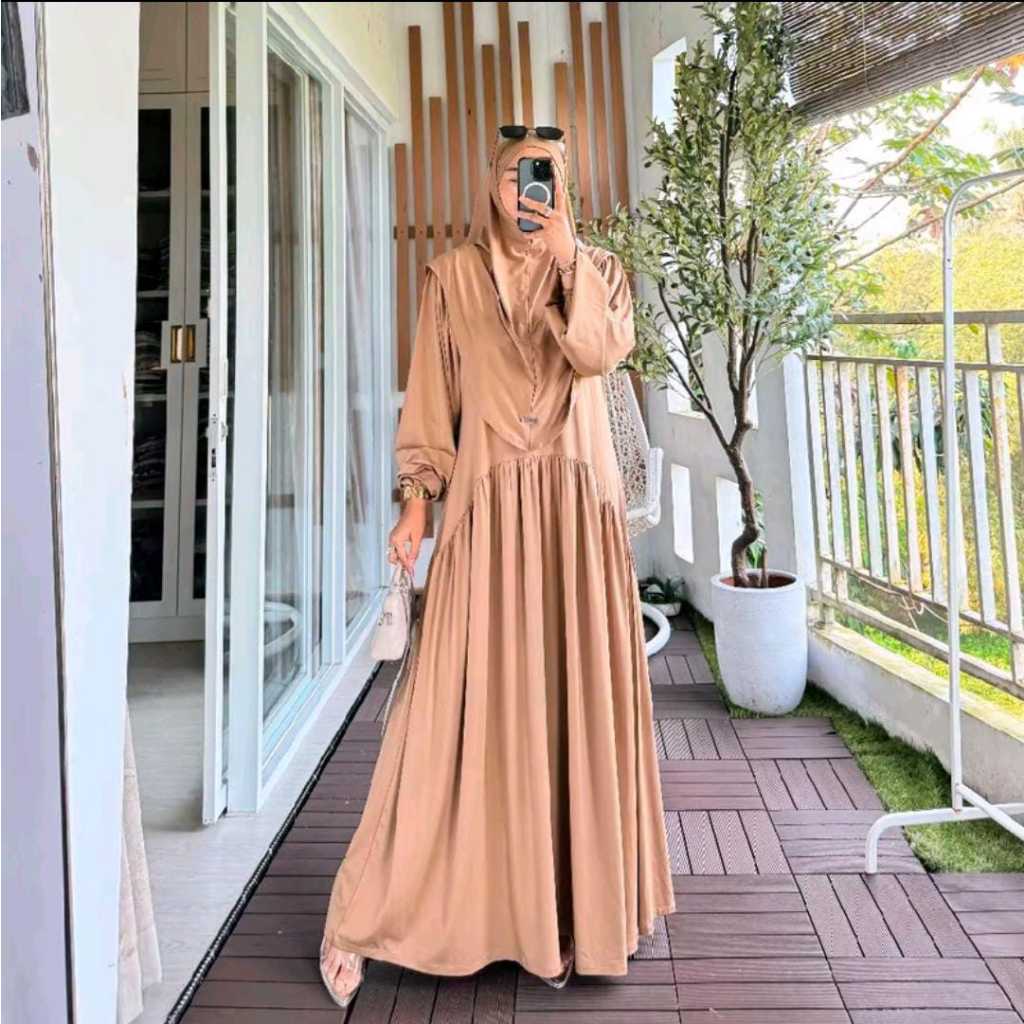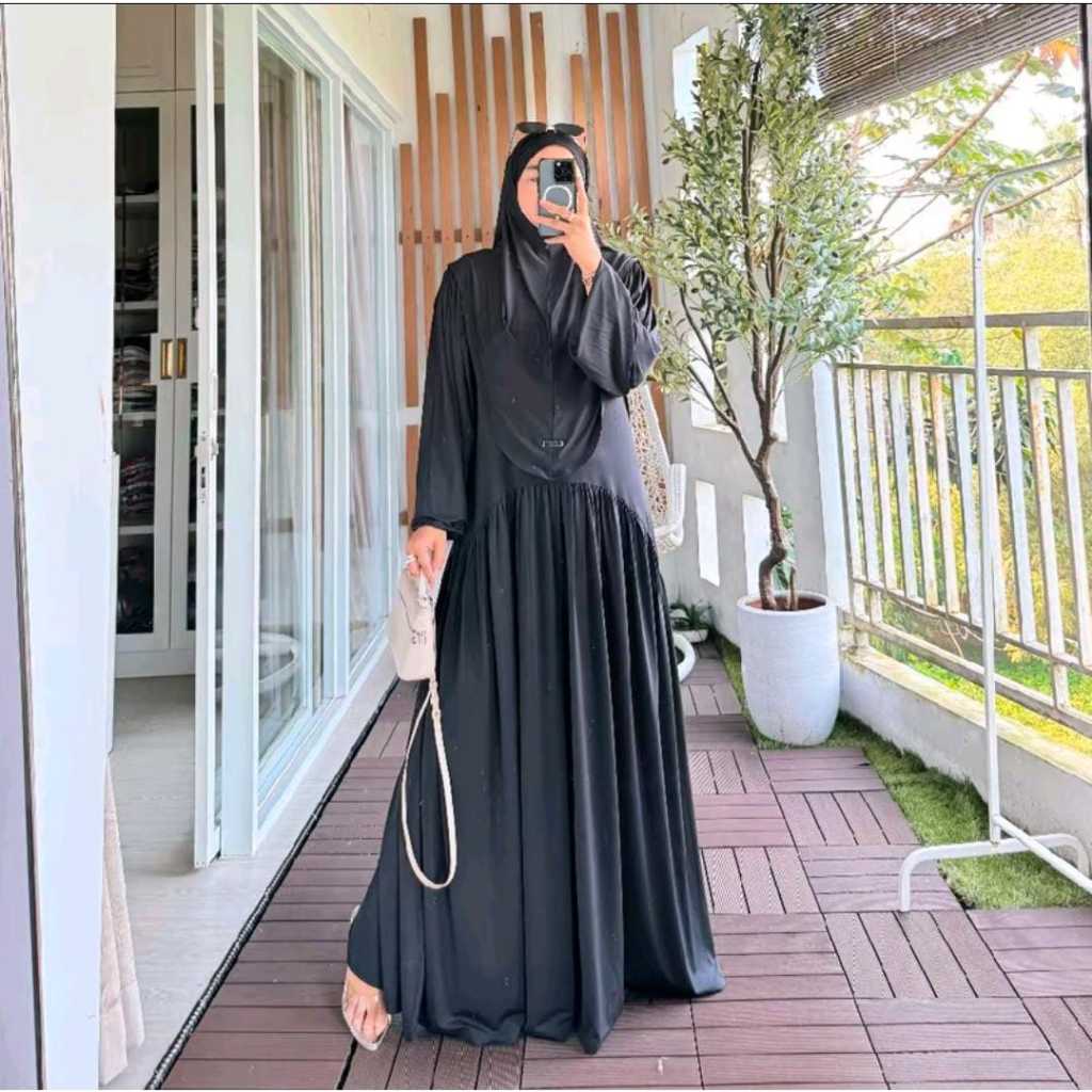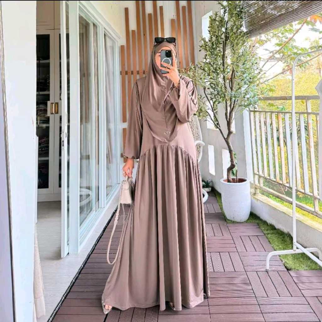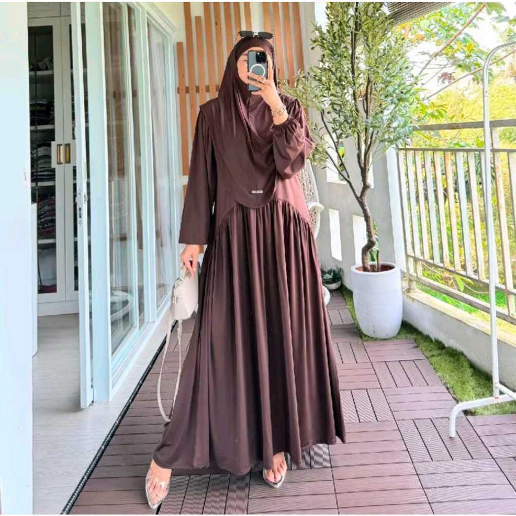 Gamis Polos Hanna Set Hijab 2in1 Bahan Jersey Premium Super Jumbo