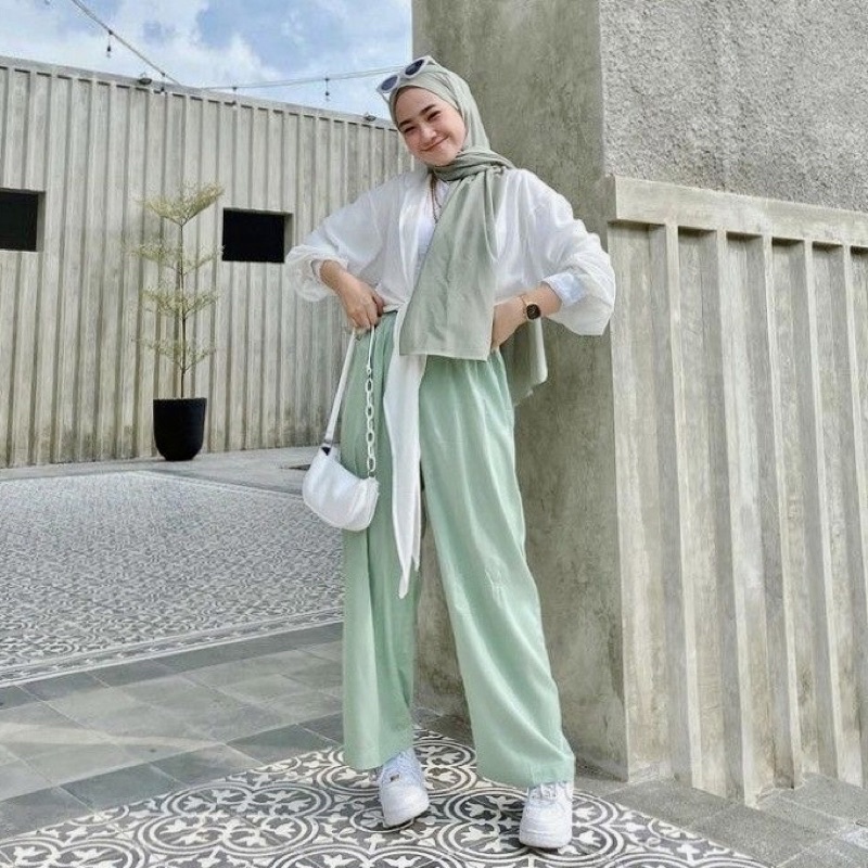Celana Katun Linen Wanita Jumbo Kulot Panjang Pinggang Karet Melar Nyaman Celana Linen Polos Jumbo