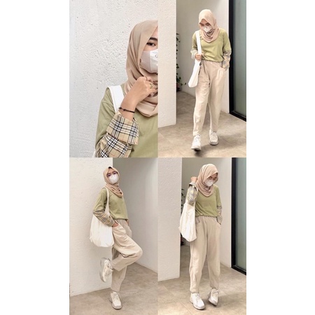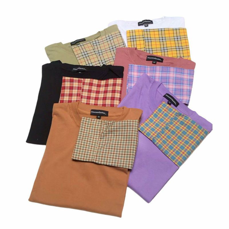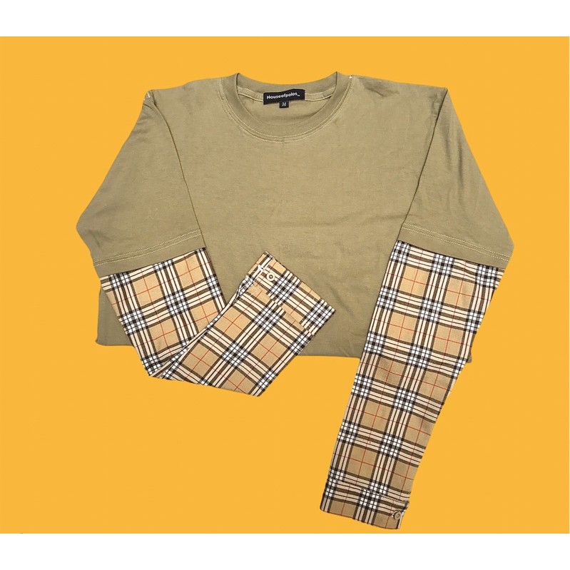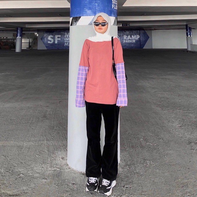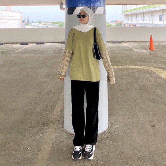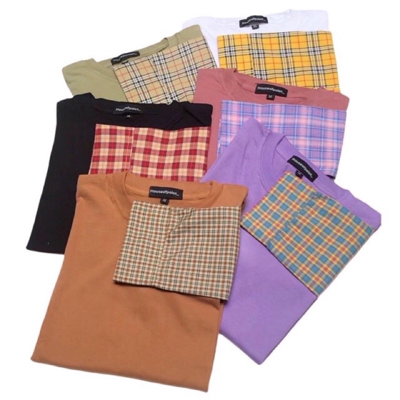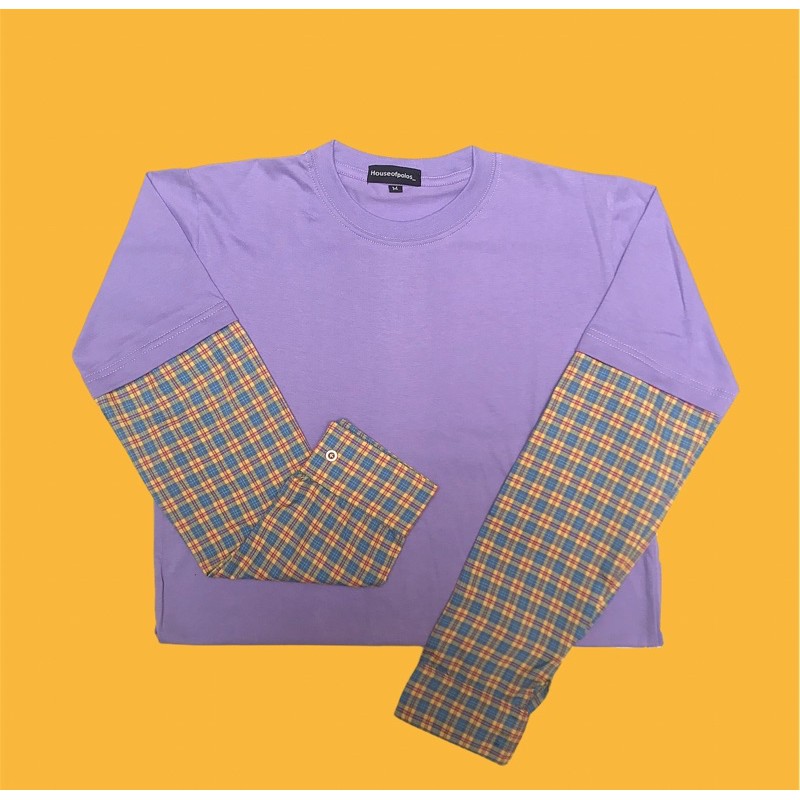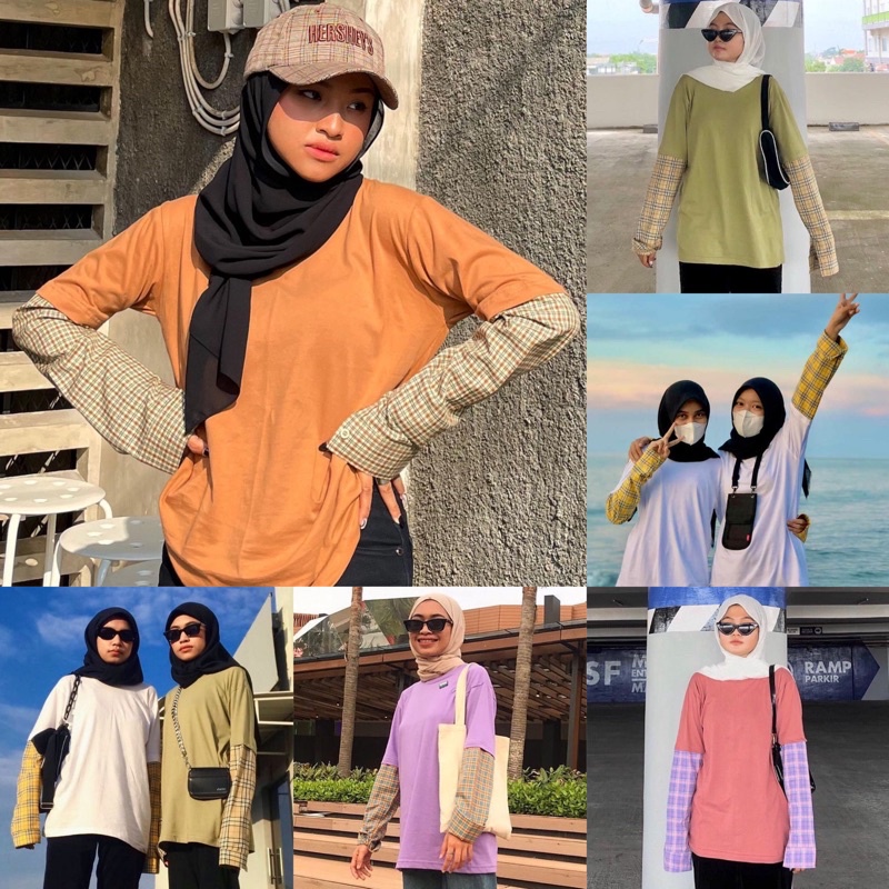 KAOS SAMBUNG TARTAN | FLANELA LAYER | OVERSIZED KOREA | BEST SELLER COD