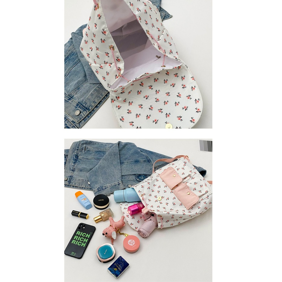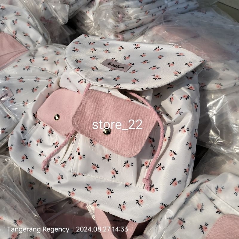 READY STOK Tas Bahu Ransel Korea Serut Flowers Bunga Lucu Wanita Manis Design Elegan