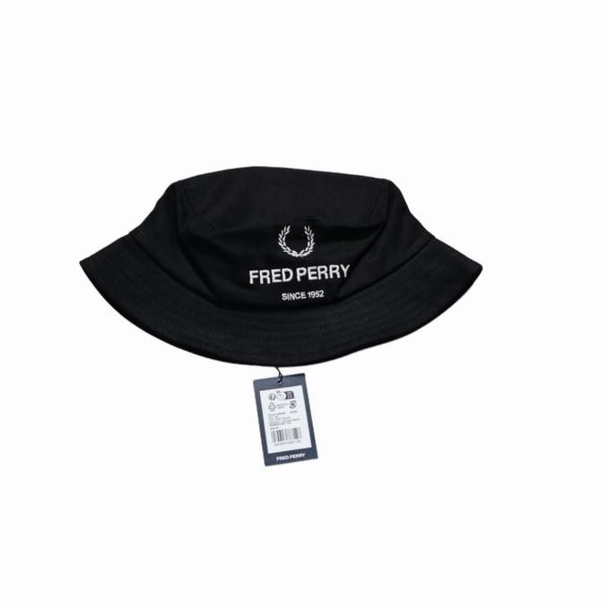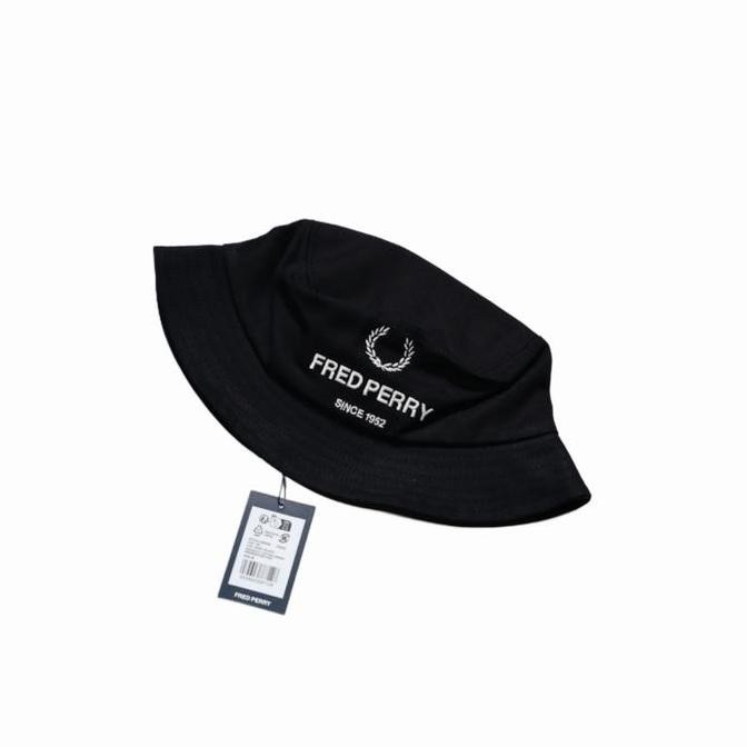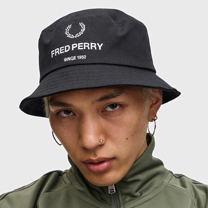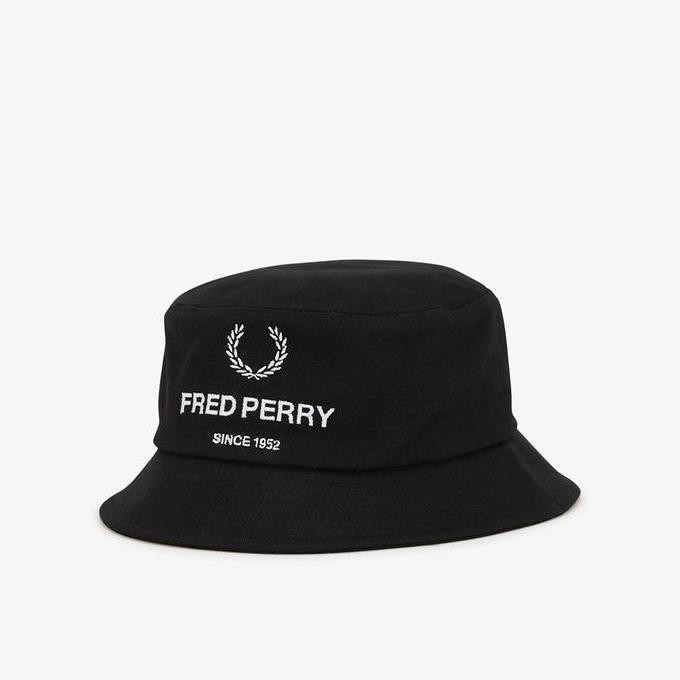 Sale Fred Perry Graphic Branded Bucket Hat Black Original