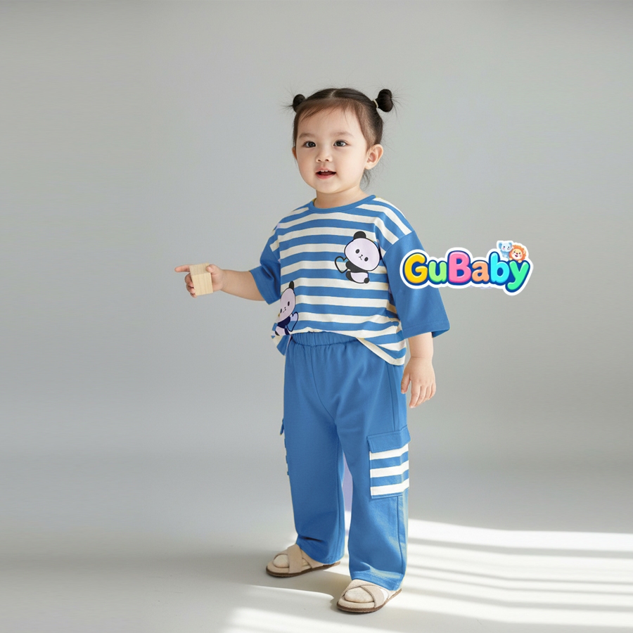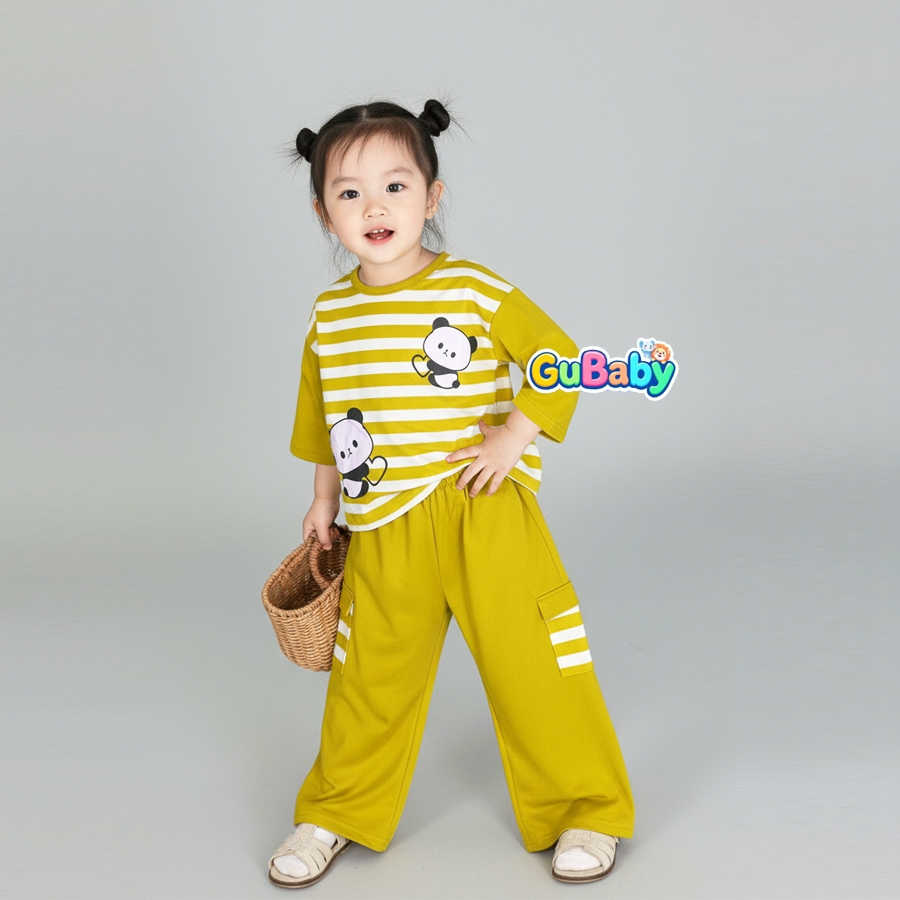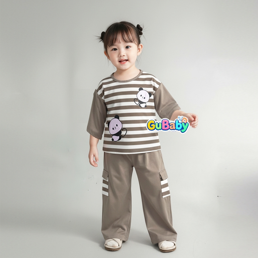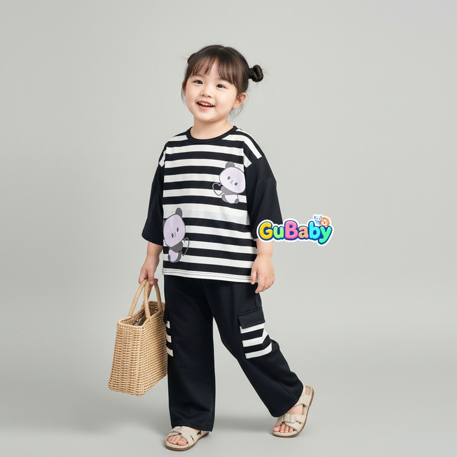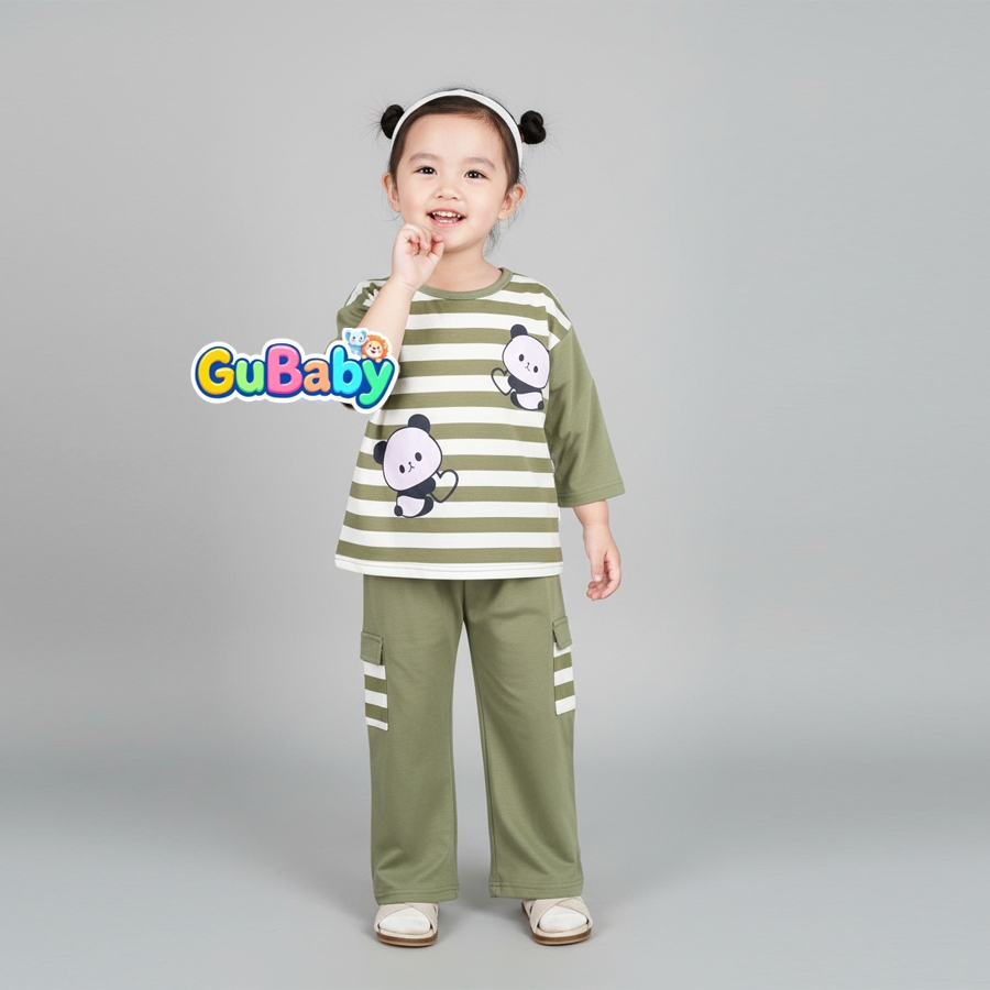 Setelan Anak Baby Perempuan Baju Panda Salur Celana Kargo Gubaby