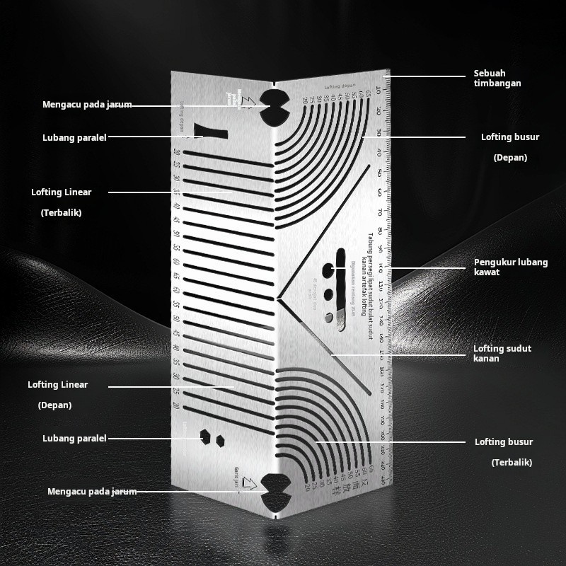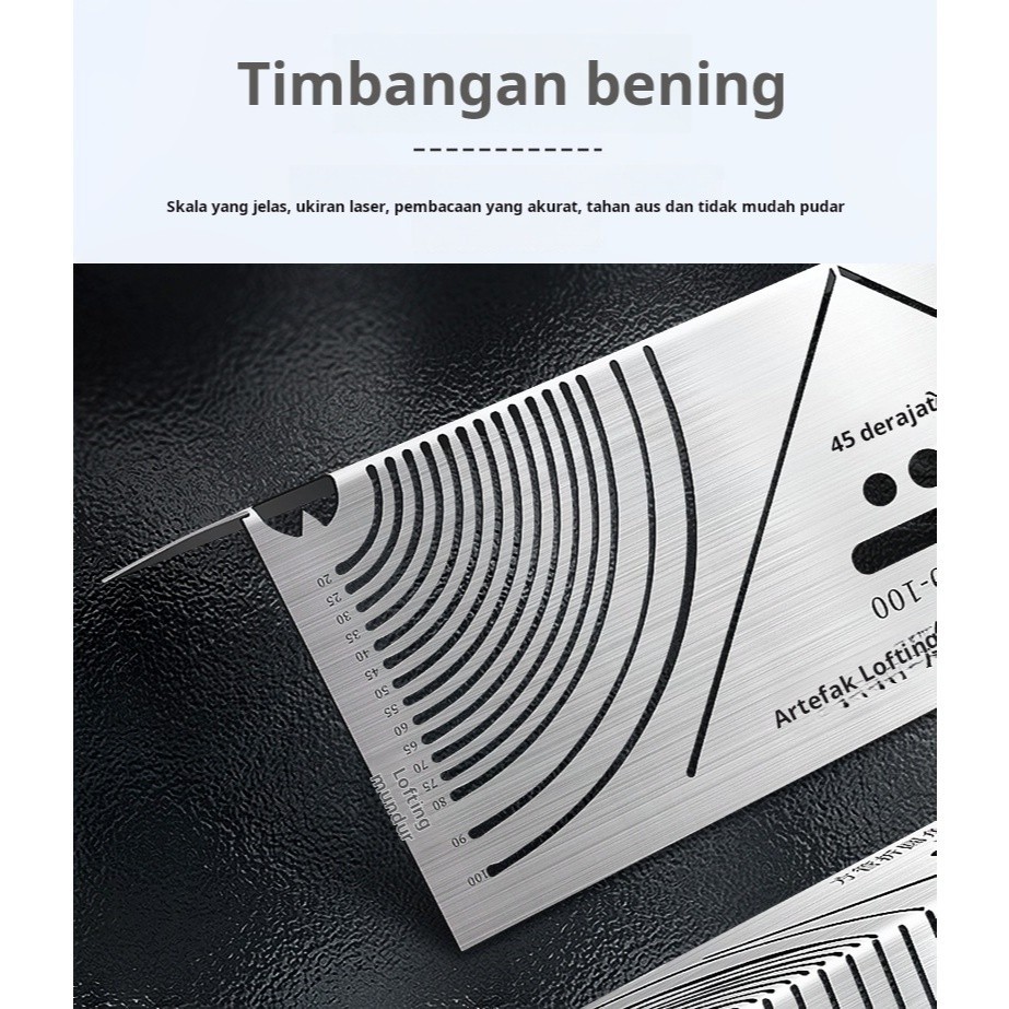 Penggaris gambar garis 90 derajat multifungsi penggaris lingkaran lipat baja persegi lipat sudut busur penanda artefak tabung persegi pembengkok penggaris gambar garis 90 derajat