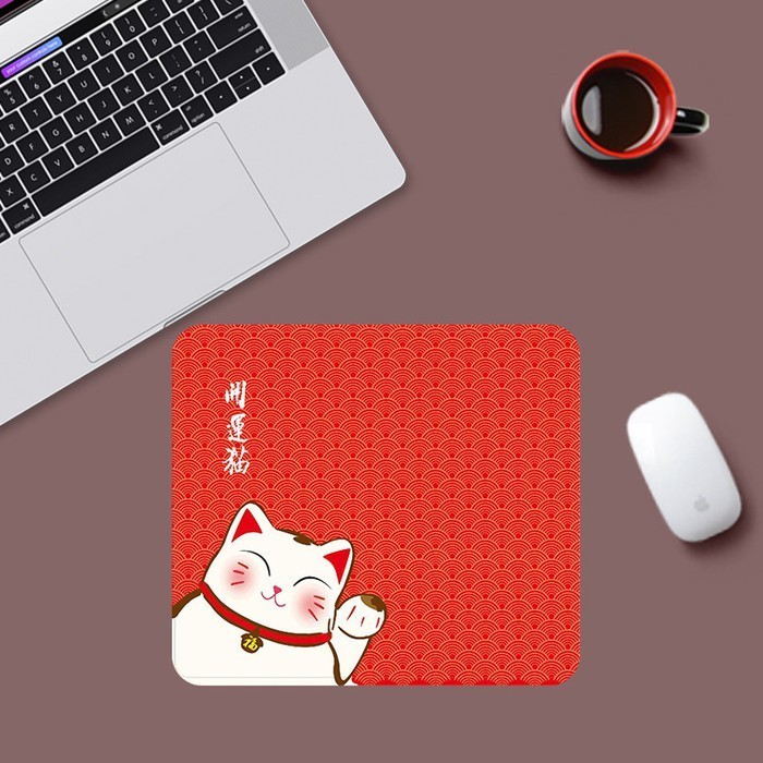 Mouse Pad / Mousepad Persegi Motif Kucing Keberuntungan