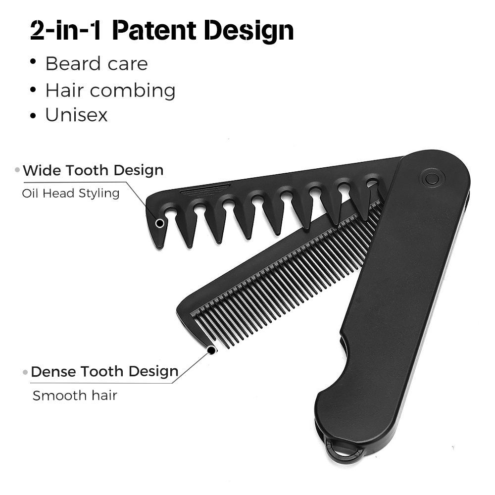 Sisir Rambut Lipat Ganda 2in1 ABS Mudah Simpan Hitam 12x3x1cm Travel Pocket