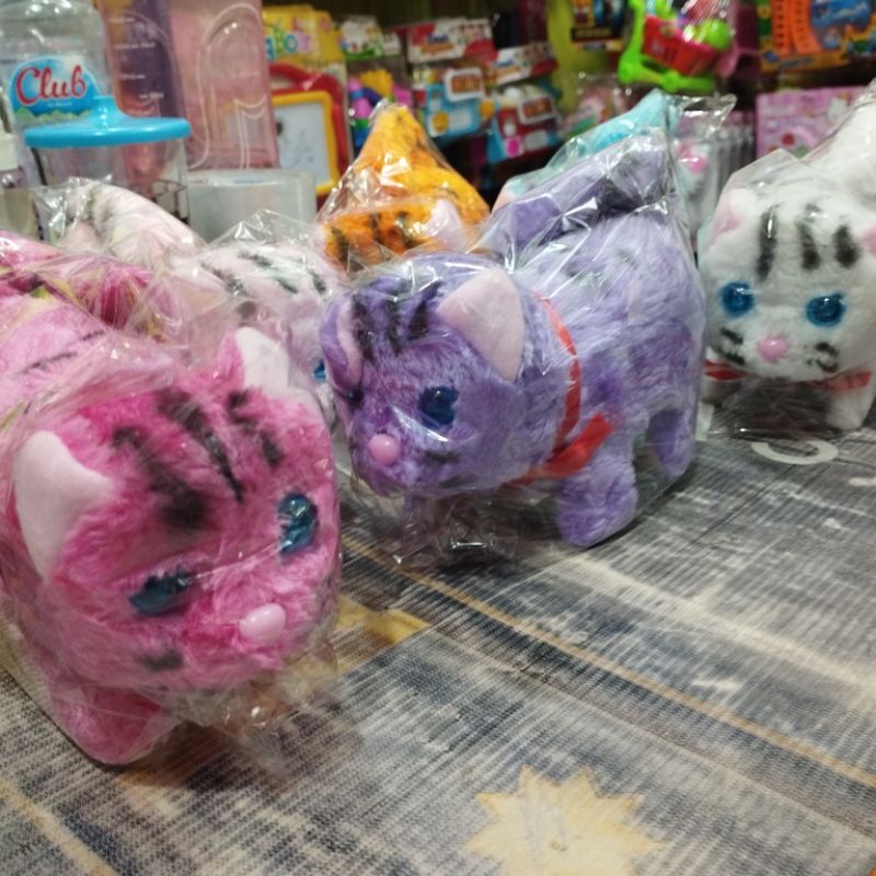 Mainan Boneka Kucing Meong Lucu Bisa Berjalan dan Bersuara Meong Mata Nyala Lampu Led/Boneka Anjing Lucu Berjalan dan Bersuara