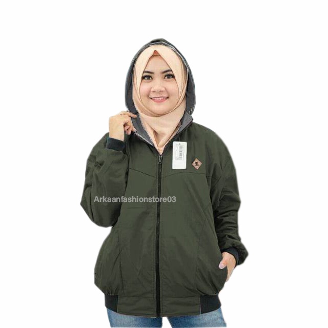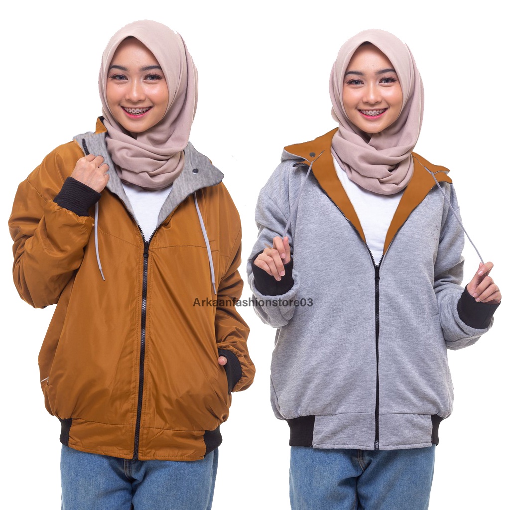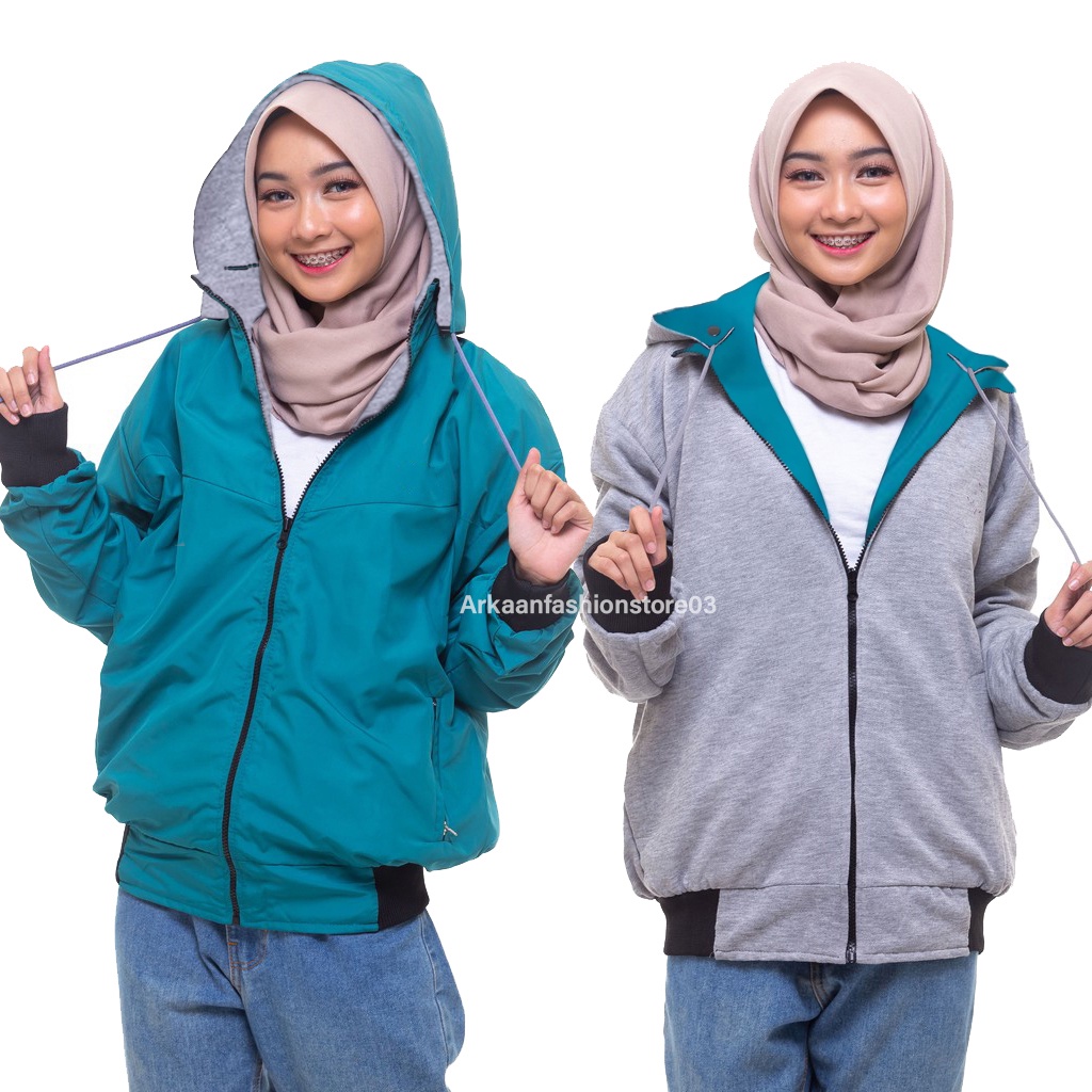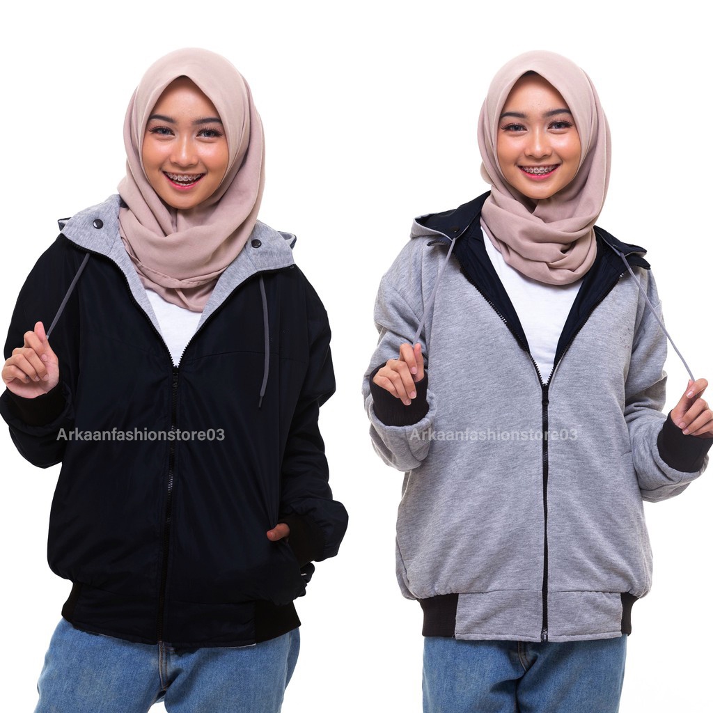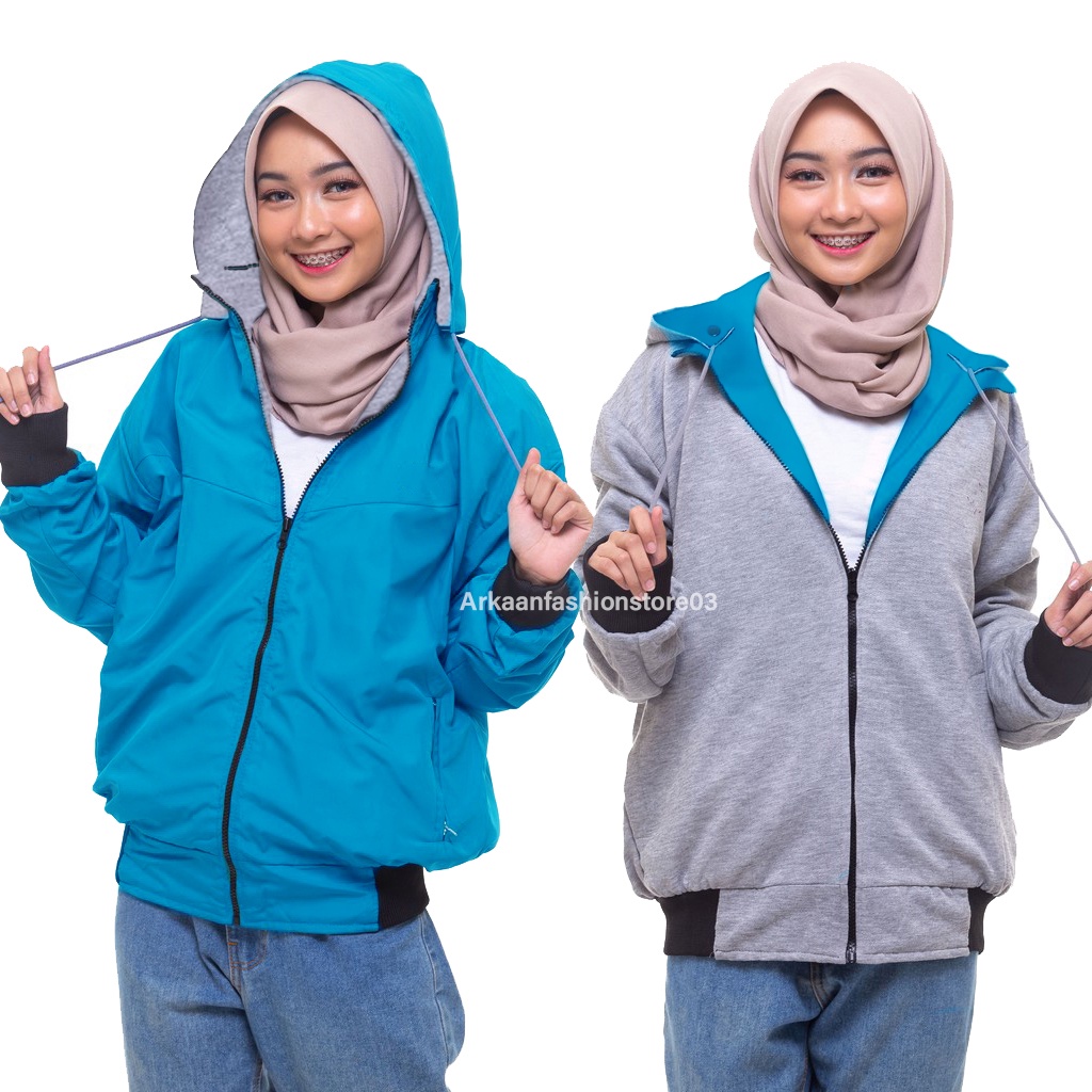 AKN- JAKET BOLAK BALIK WANITA IMPORT / JAKET HOODIE WANITA 2 IN 1 ANTI AIR PRIEMIUM TEBAL TERBARU