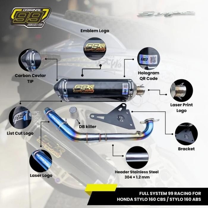 PREMIUM Knalpot Stylo 160 Abs Honda Stylo 160 Cbs FullSystem Original 99 Racing Type Sr-9 Black