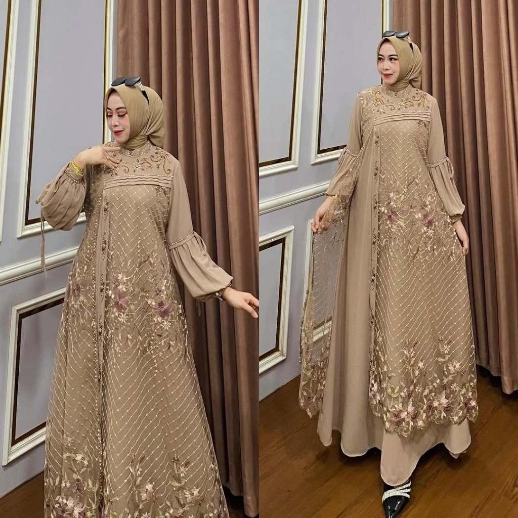 MURAH Terbaru!! Klarissa Gamis Jumbo Ld 120 Dress Kondangan Brukat Bahan Adem Simple Elegan Mewah