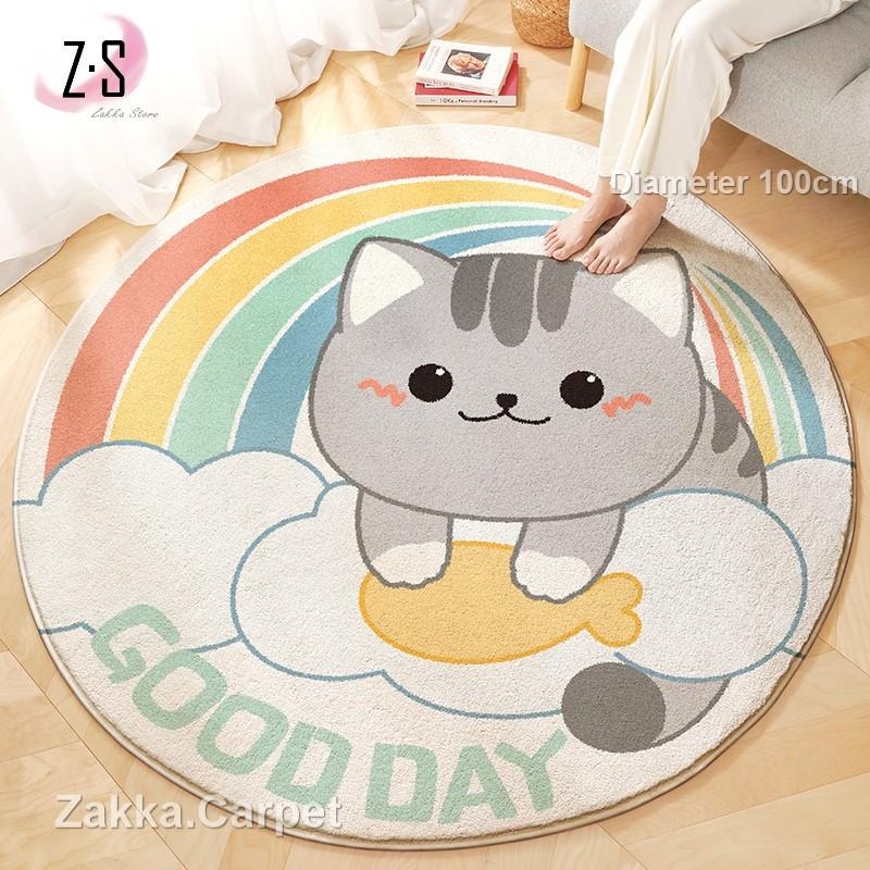 ZAKKA STORE Karpet Bulat Aestetik /Karpet Bulat Modern lwk55 Karpet Bulat Bulu Cashmire Diameter 100Cm