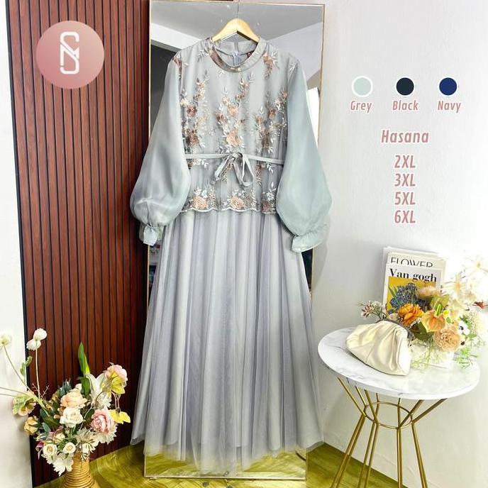 Myshawl Hasana Gamis Jumbo Gamis Bigsize Gamis Brukat Dress Kondangan Dress Gamis Jumbo Tille Motif Kasual Kondangan Wisuda Kekinian Big Size Brukat Bunga Jumbo Wanita Muslim Mewah Bordir Kancing Mireya