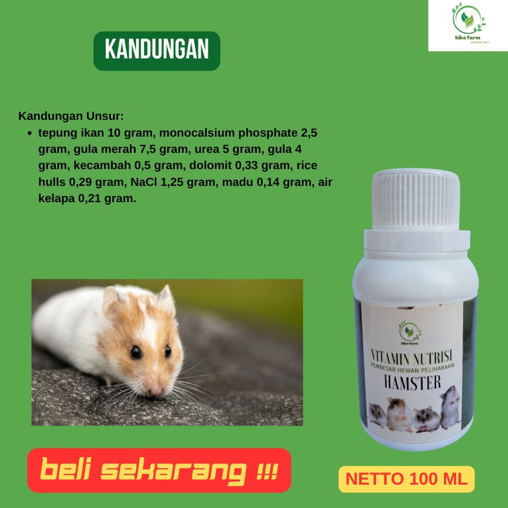 Vitamin Organik Cair Pengemuk Hewan Peliharaan Hamster. Vitamin Organik Cair Menyehatkan Hamster