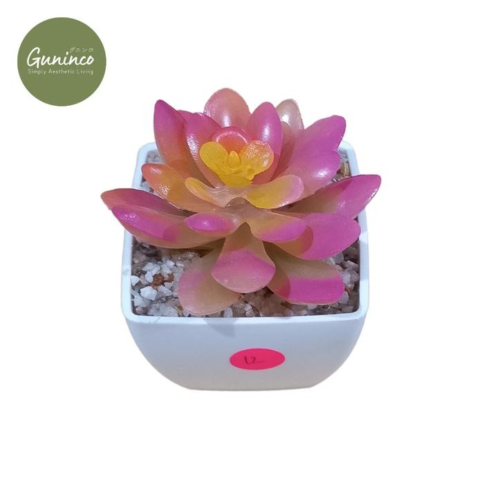 KAKTUS SUKULEN MINI Artificial Dekorasi Tanaman Hias Palsu Aesthetic Hiasan Latex Plastik Hijau Pot