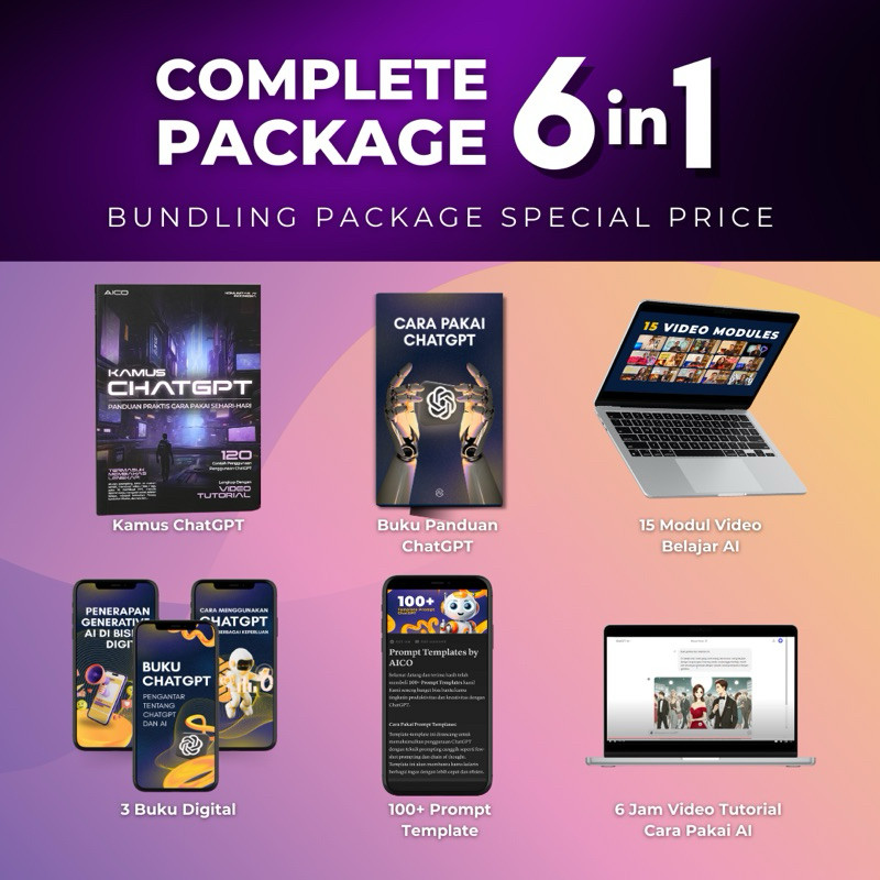 NEW AICO - Paket 6 in 1 Lengkap Buku Belajar AI Kamus Chat GPT Learning Pass AI004CO PREMIUM
